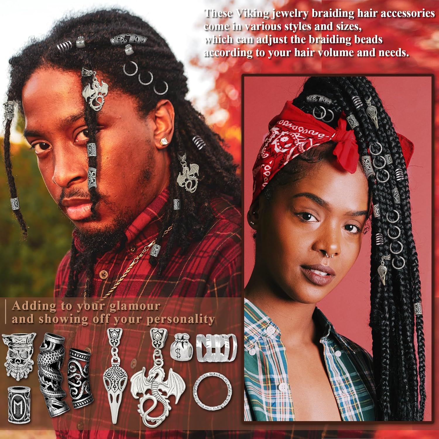 Viking Style Made Easy:Box braids accessories come in a variety of nordic styles,decorations with letters,mystical symbols and fun patterns.The different styles of beads and symbols are great for decorating hair,beards and braids!The jewelry can be easily put on using the included plastic gadget.Create your beautiful self and look more attractive,confident and elegant.