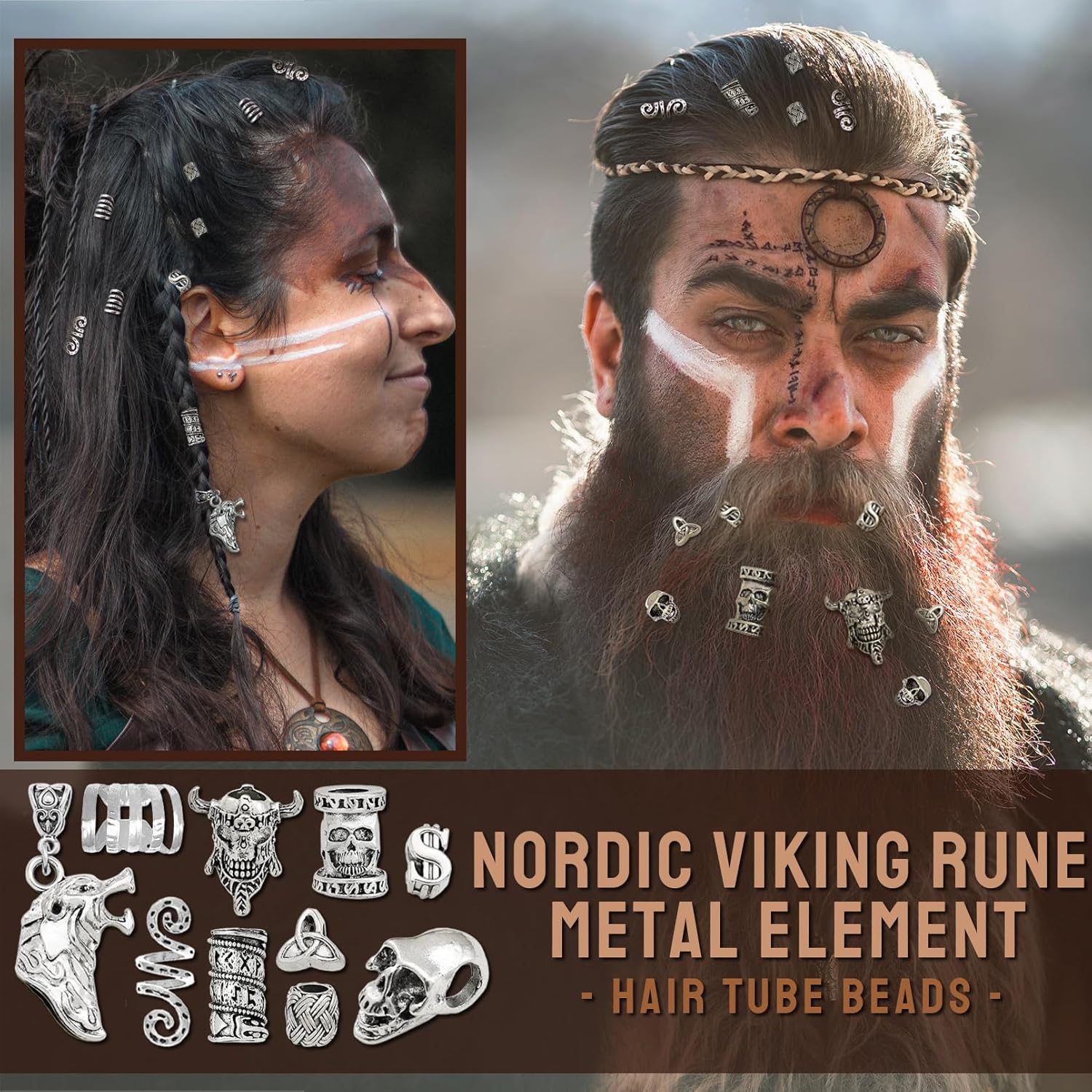 Suitable Size and Materia:The smooth Viking accessories are perfectly sized for your beard and braids,and the boxed braid accessory set comes with a variety of beads in various diameters that are perfect for sliding through your hair.Made from metals strong enough for jewelry,zinc alloys, stainless steel and some Tibetan alloys.Nordic Viking beard beads can give you a vintage and exotic look.