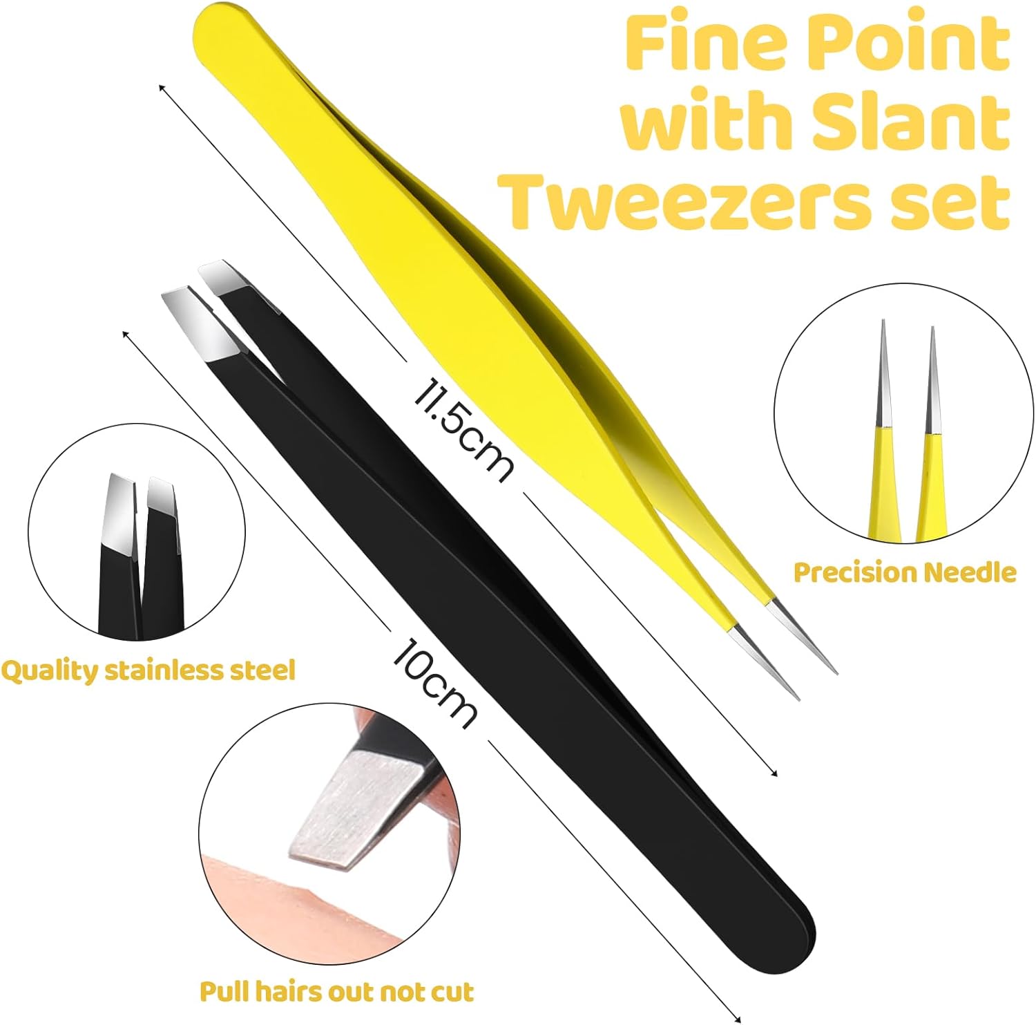 The slanted eyebrow tweezers and fine point tweezers are suitable for removing ingrown hair, plucking eyebrows, chin hair or extracting other facial hair.