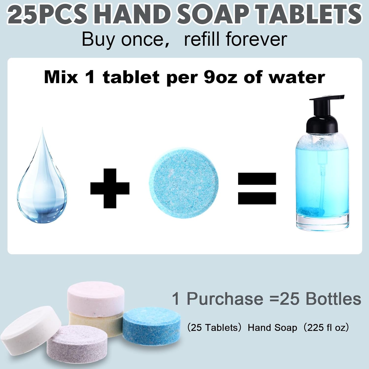 25 Count Foaming Hand Soap Refills Tablet Variety Scents Soap Tablets Hand Soap and Cleaning Products Makes 50 x 9 Fl oz Bottles (450 Fl oz Total) Lemon Coconut Oceanic Lavender Rose Scented