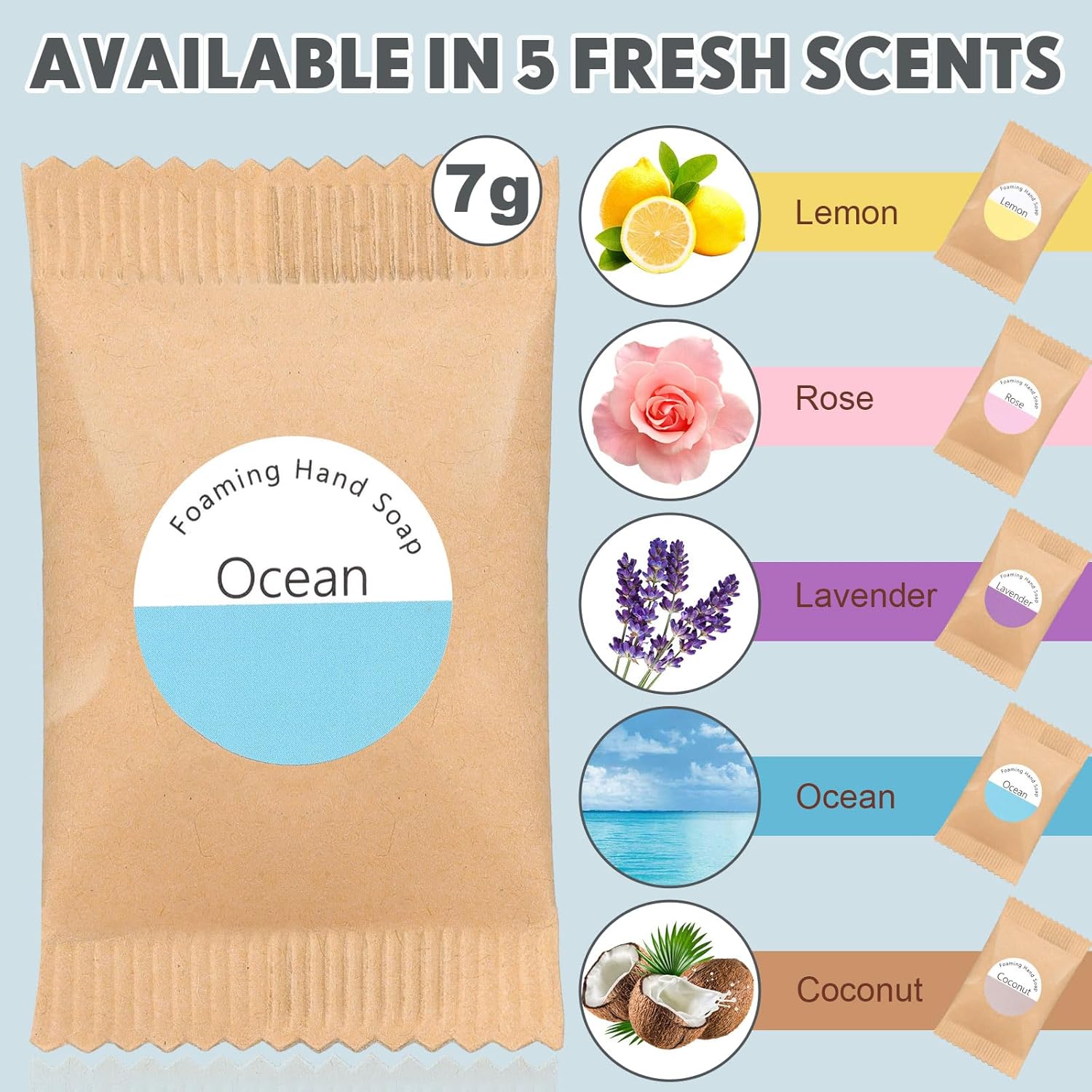 Pack of Soap Tablets: our package provides 25 pack hand soap tablets, each foam soap refill is individually wrapped; Our foaming hand soap tablets set includes 5 x Ocean, 5 x Lemon, 5 x Rose, 5 x Coconut, 5 x and Lavender, is enough to conjure up 450 fl oz Total (50 bottles x 9 fl oz); Suitable for a wide range of users, adults or kids, enjoy the convenience of our bulk soap tablets