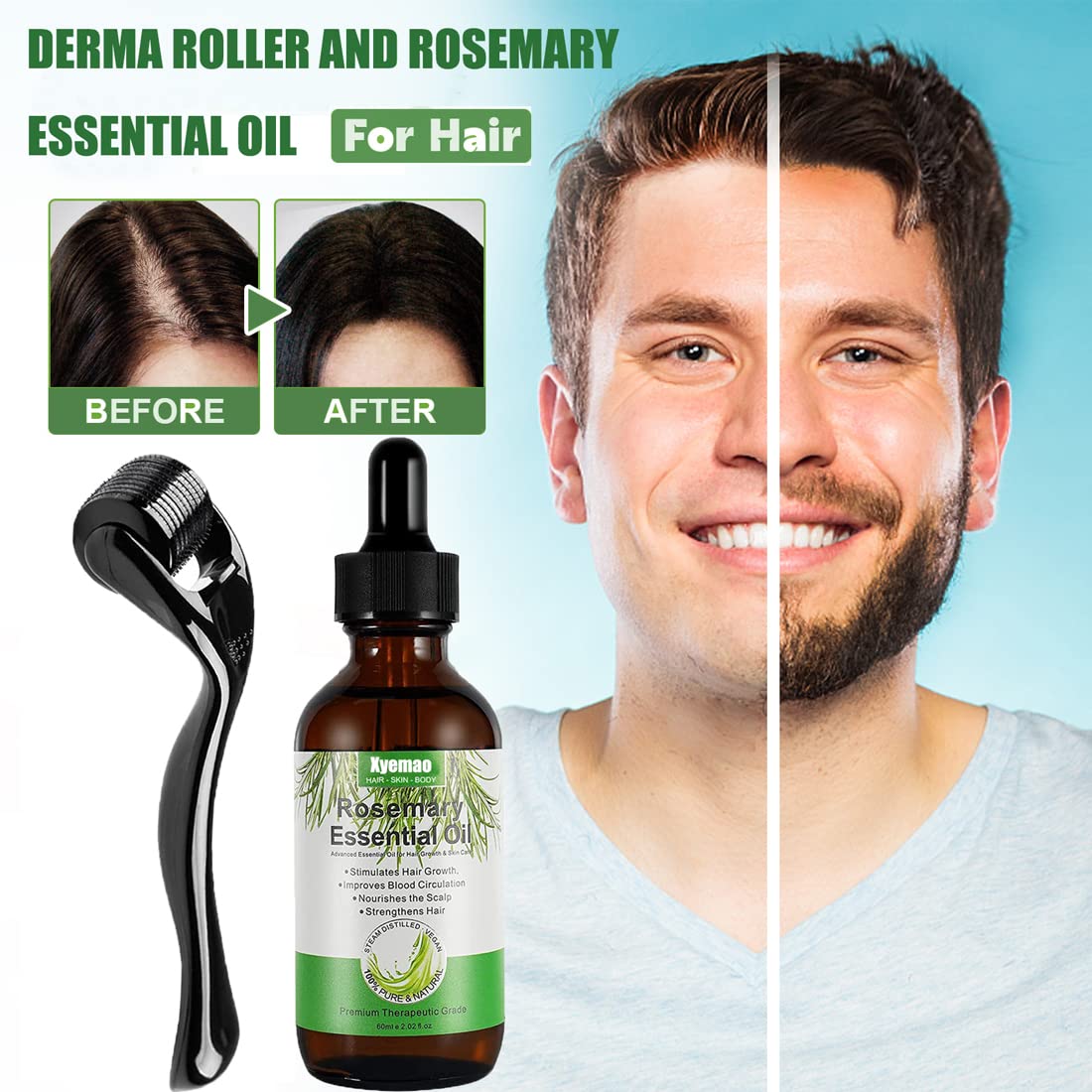 PROMOTES HAIR GROWTH: Our Rosemary Essential Oil is a natural and effective hair growth product. Its unique formula stimulates blood circulation to the scalp and promotes healthy hair follicles, thereby enhancing hair growth and density.