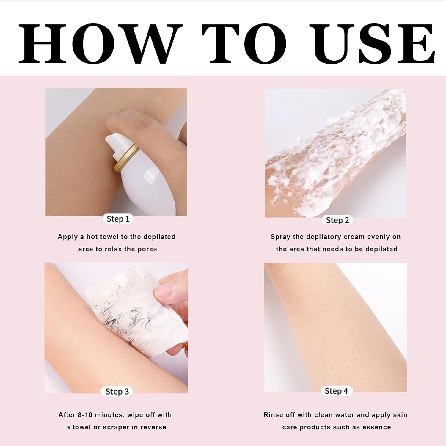 【Natural Ingredients】The hair removal mousse contains beeswax, maltose and glycerin, which are deeply moisturizing and nourishing skin, make the skin smoother.