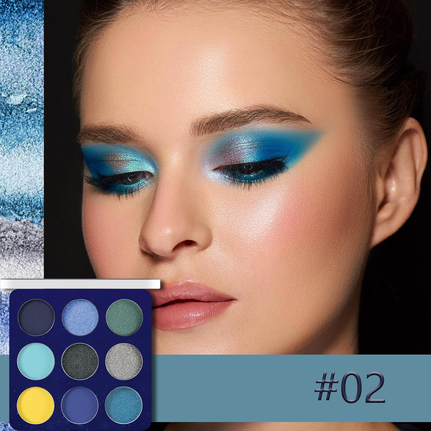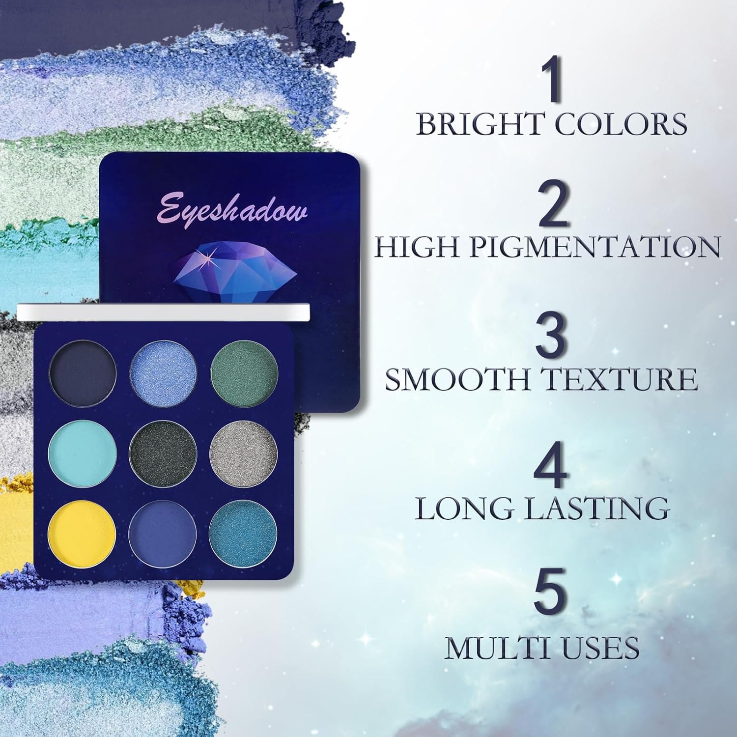 2pcs Eyeshadow Palette with Eye Primer,Waterproof Matte Glitter Eye Shadow,Long Wear Eyeshadow,Highly Pigmented Blue Eye Makeup