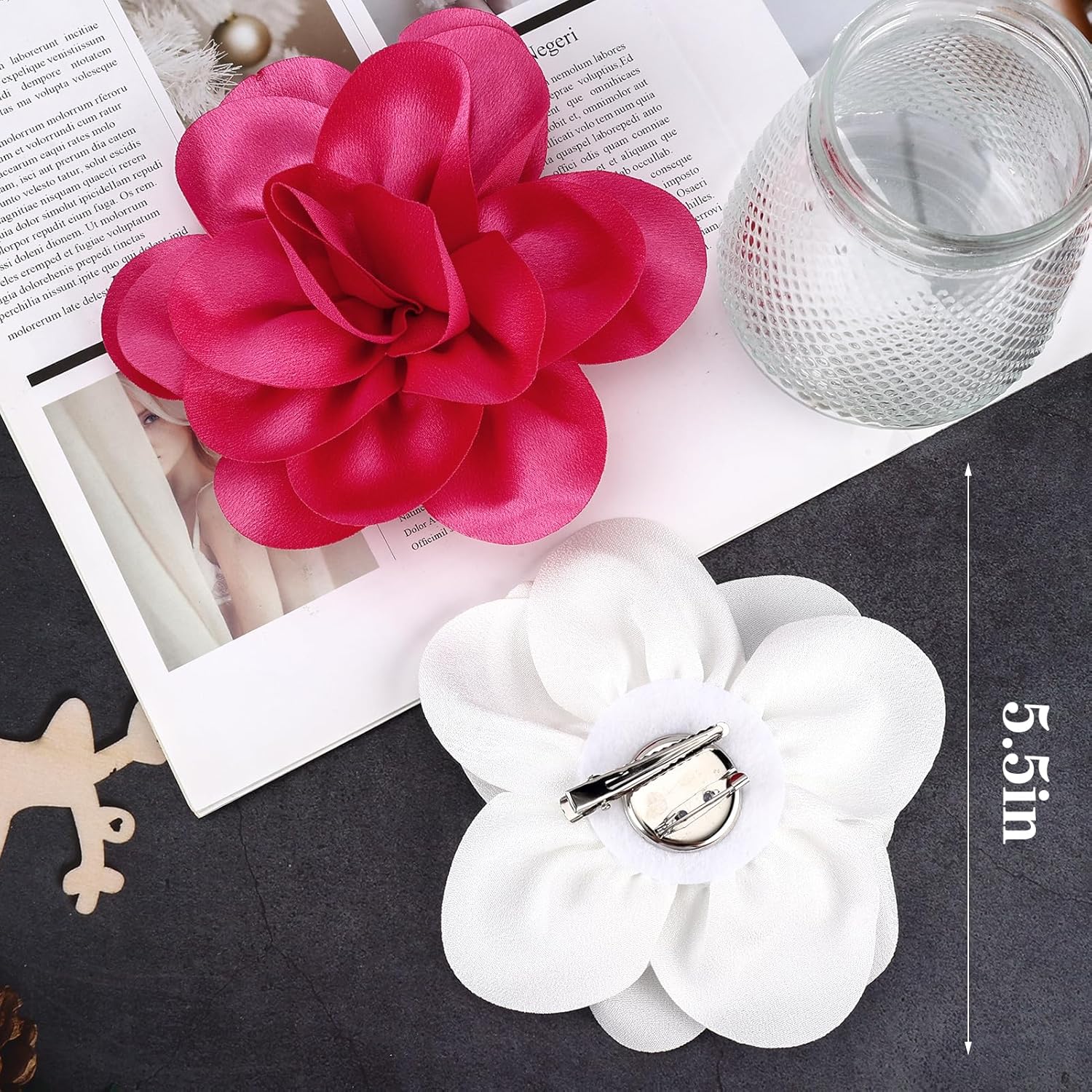 LARGE HAIR FLOWERS:The dainty women fabric brooch with duck clips also are floral hair clips can be used as a fashionable hair decoration for going out, traveling, party, wedding and other important occasions for women girls,so the flower brooch pin are easy to be pleasant.Wedding party dance clothes accessories jewelry gifts.Hot pink hair clips, white hair clips.