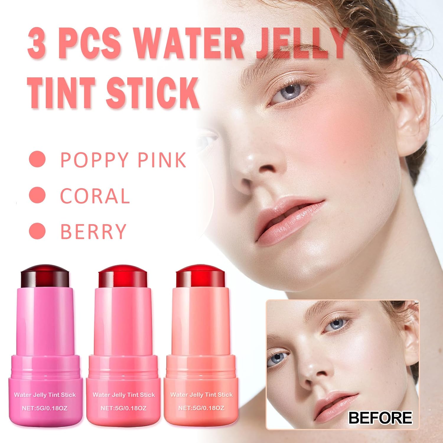 【New Jelly Coloring Stick】This cooling water jelly tint, buildable watercolor makeup. It has a moisturizing, stretchy jelly texture that produces a sheer, buildable color effect upon application.