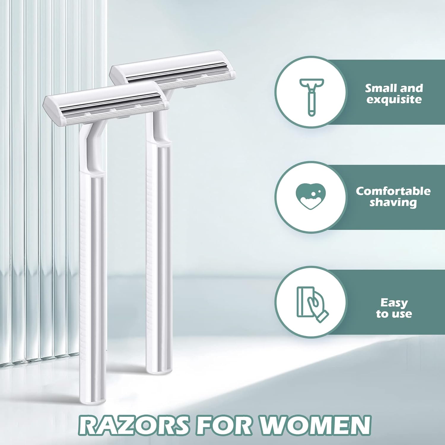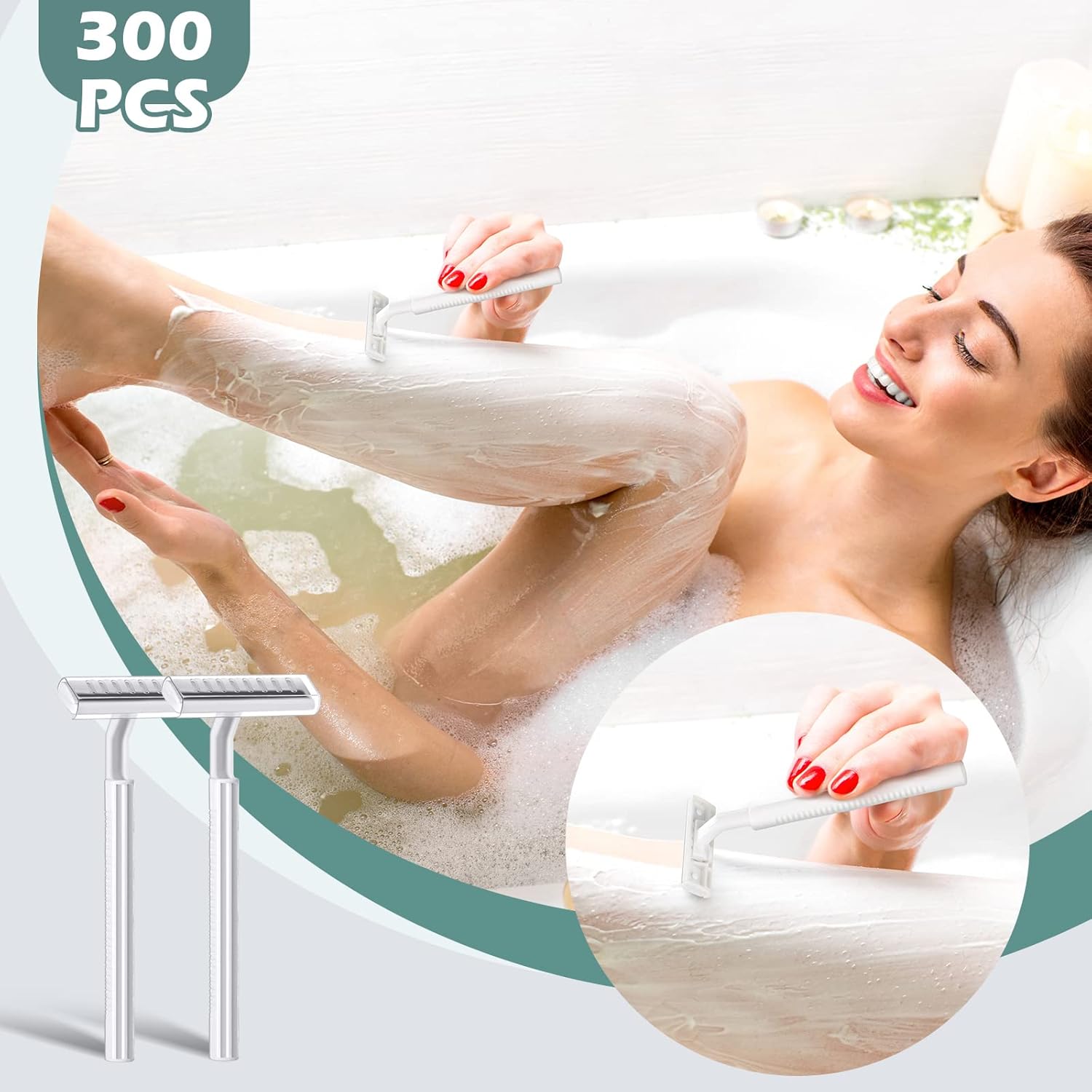 300 Pieces Disposable Razors Bulk for Women Individually Wrapped Hotel Guest Shaving Razors Safety Stainless Steel Twin Blades Women’s Razors Shaver for House Travel Home Use Portable, White