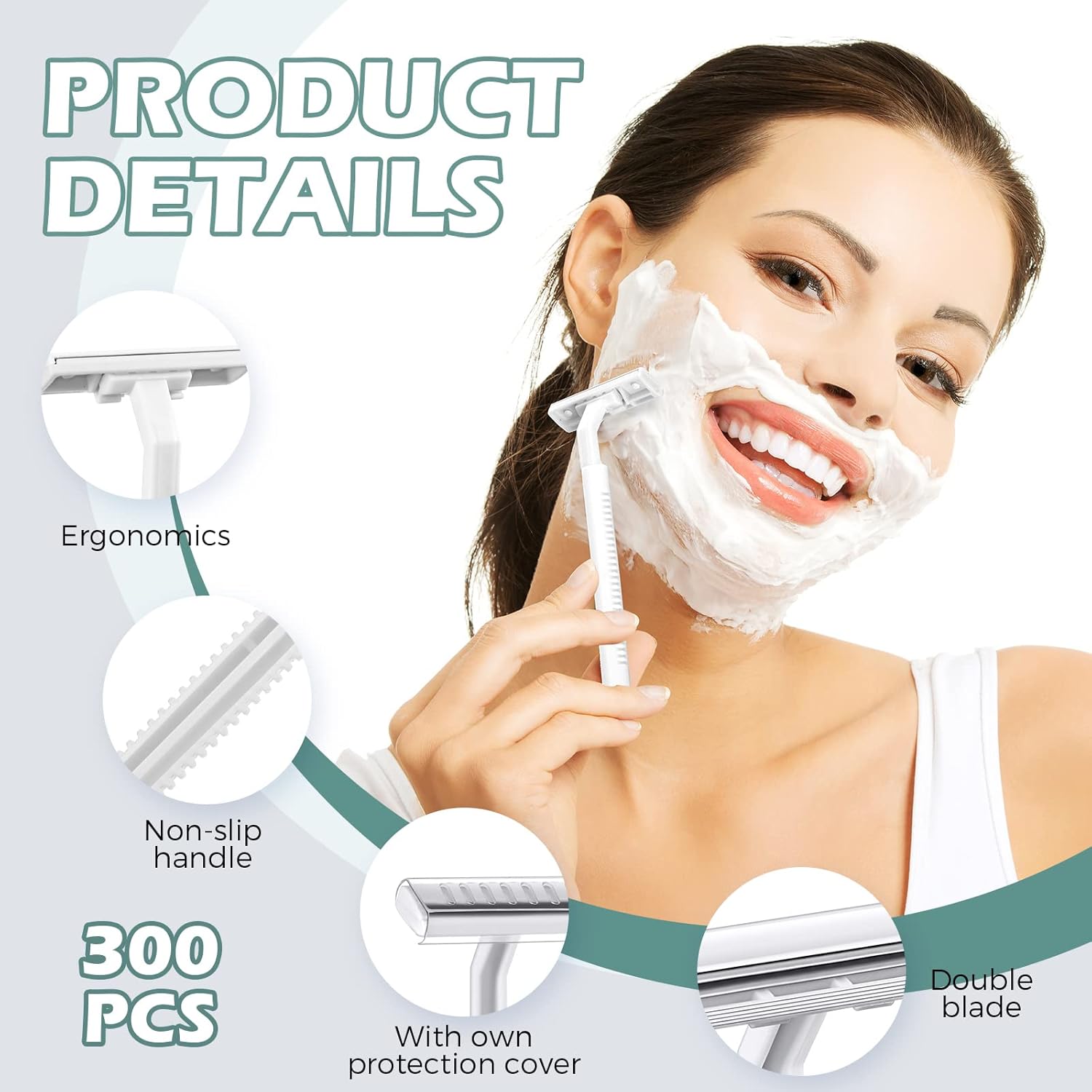 Abundant in Quantity: you will receive 300 pieces of white razors, abundant in quantity, sufficient to meet your daily needs of shaving hair, and you can share them with your friends or families, and double blade design makes shaving effect better and faster