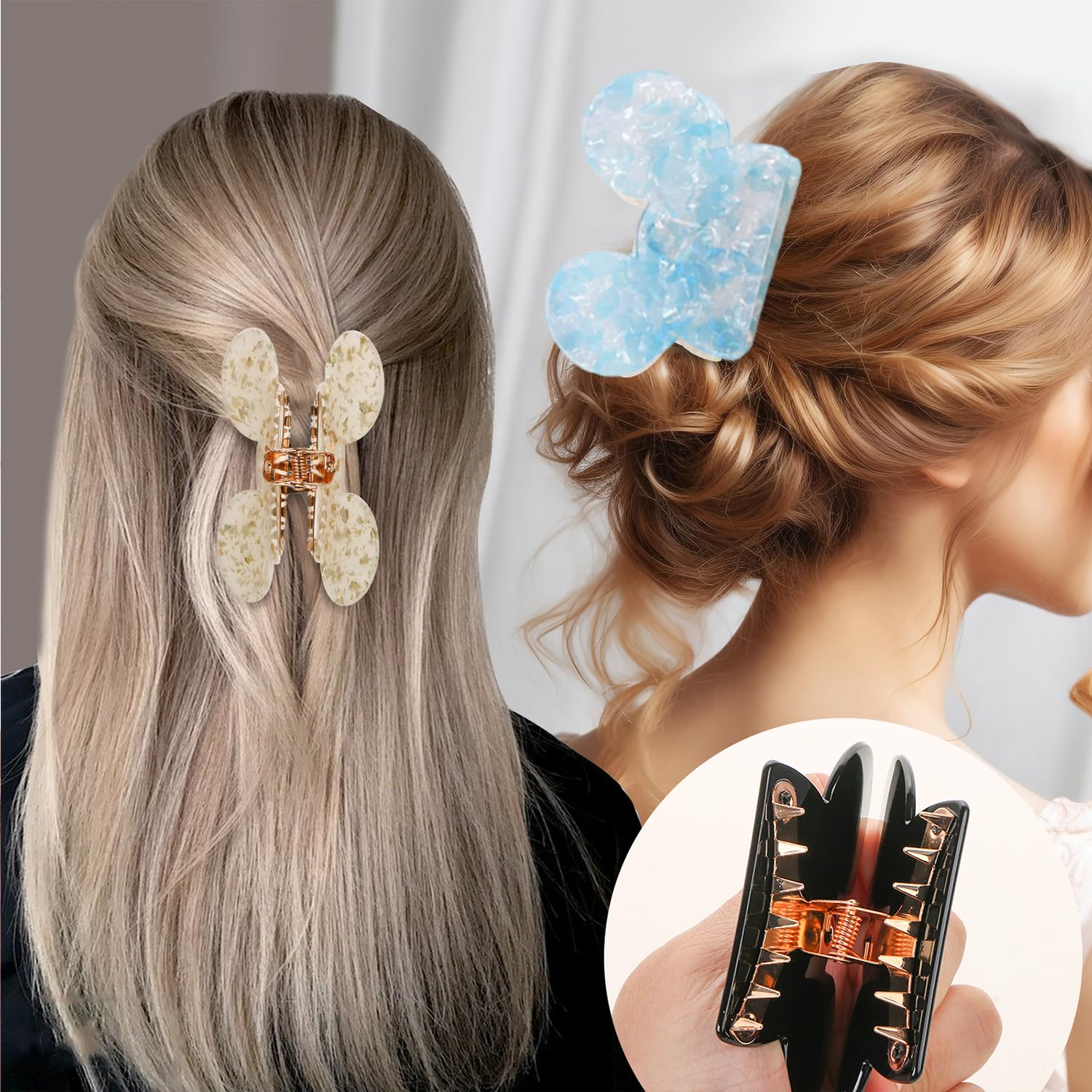 【Unique design】- You will receive 3 pcs of acrylic hair clip, which adopts mouse head design. This unique style makes this hair claw look very simple and interesting. Interlocking tooth design, suitable for thin and medium hair.