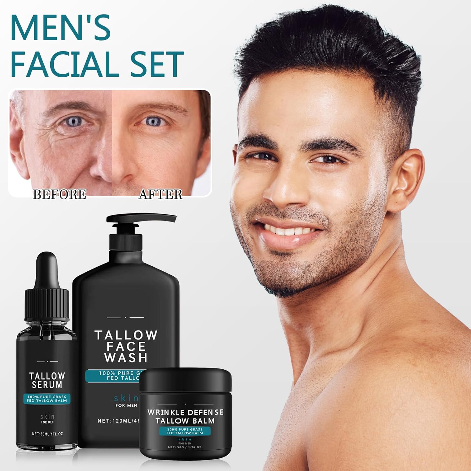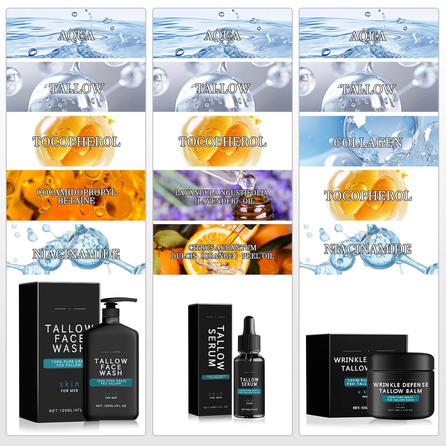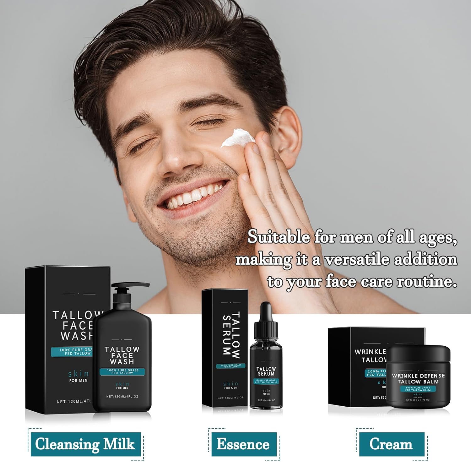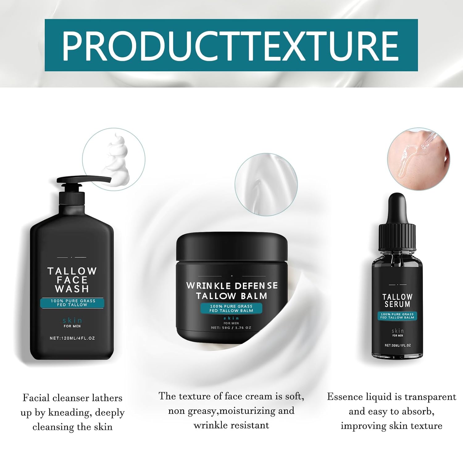 3Set Forge- Wrinkle Defense Tallow Balm,Skin Care for Men, (Tallow Cream + Tallow Night Serum + Tallow Face Wash) Tallow Balm Face Moisturizer,Mens Facial Care Kit,Anti-Wrinkle Night Serum Anti Aging