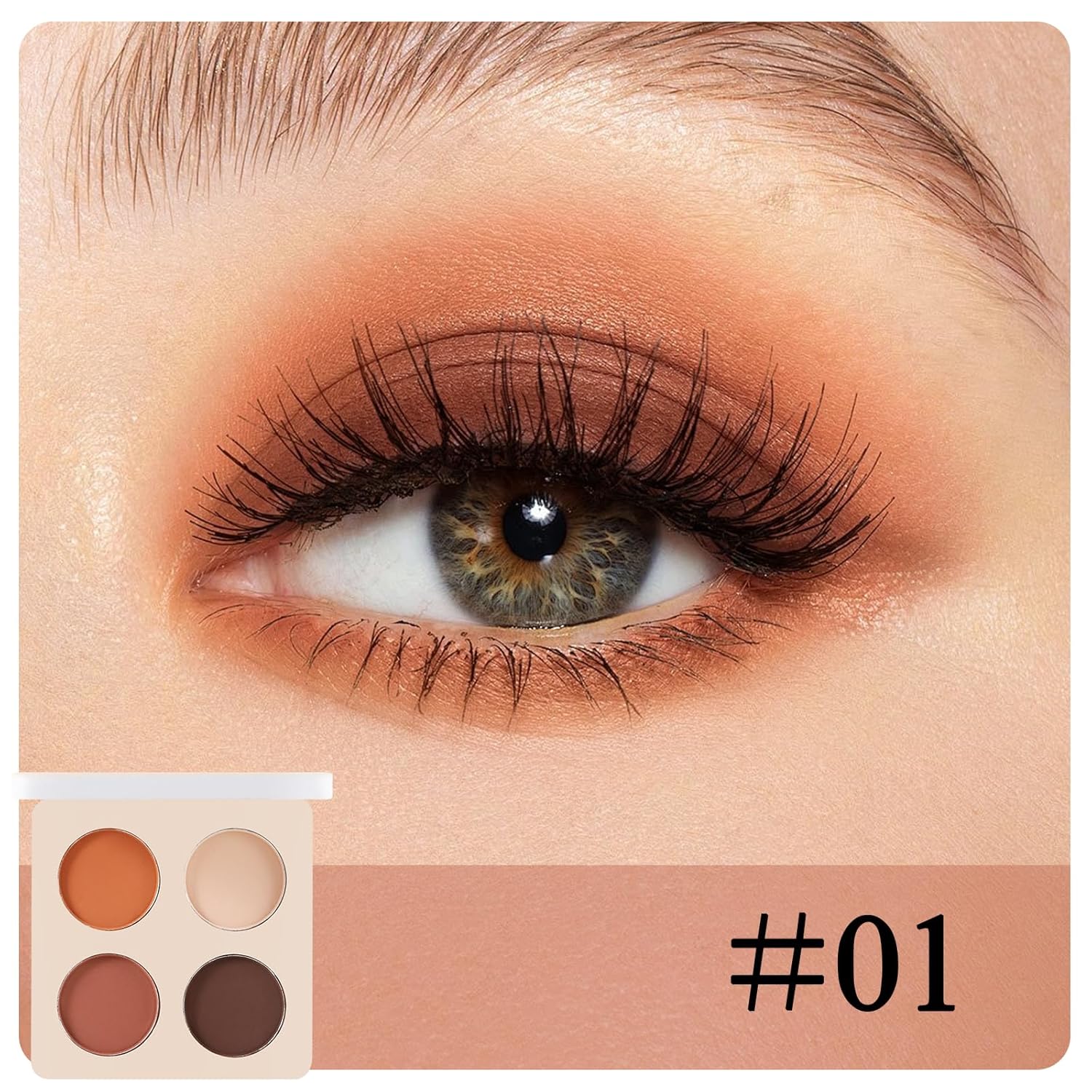 4 Colors Matte Eyeshadow Palette with 5 Eyeshadow Applicator,Highly Pigmented,Colorstay Eye Makeup,Waterproof Eye Shadow Long Wear Up to 24hr