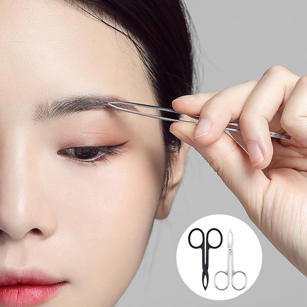 【PRACTICAL DESIGN】- Straight flat eyebrow tweezers with scissor handles are perfect for fine hair removal.
