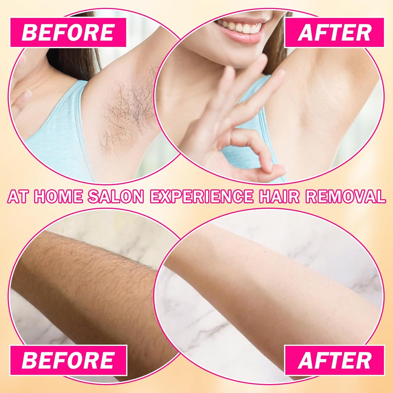 👍【Mild and Skin-Friendly】Hard wax beads are made of mild and strong ingredients that are skin-friendly and effective, allowing you to remove unwanted hair easily and comfortably.
