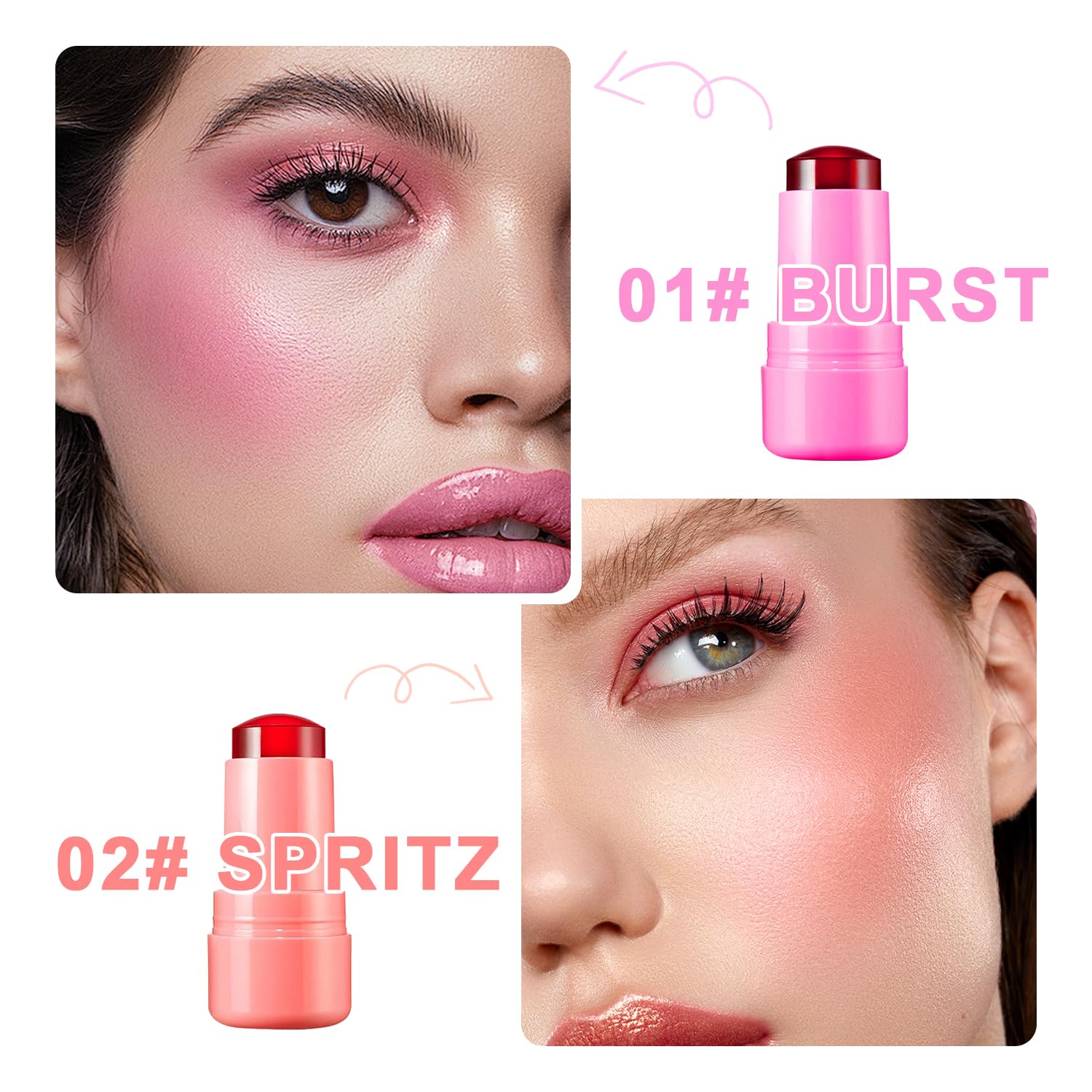 【Natural Safe Formula】Milk jelly blush stick Infused with skin-firming aloe vera, it brings a cooling. Made with natural ingredients, which include gravity-free watercolor contains lip gloss aloe vera, hibiscus flower, and sea lily fruit extracts, refreshing and refreshing effect toyour skin, making itook healthy andelastic.