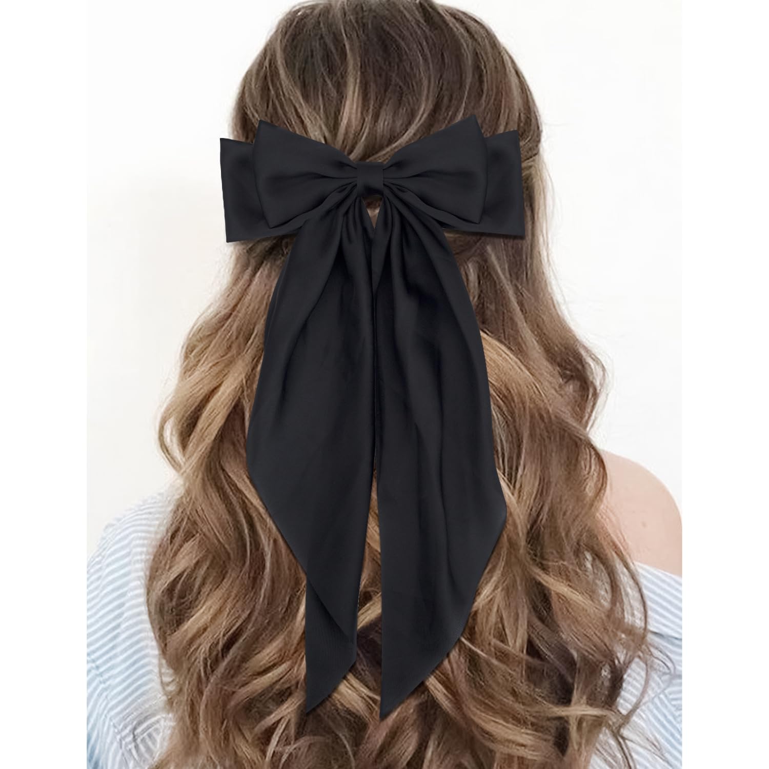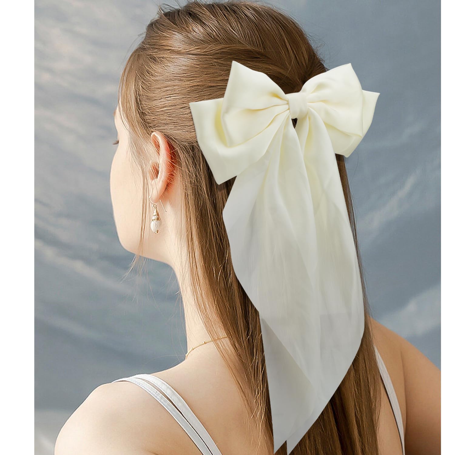 aesthetic accessories:hair clip featured with big bow and long tail, metal clip keeps hair securely in place, hold the thick or curly long hair well.suit for women and girl daily wear.