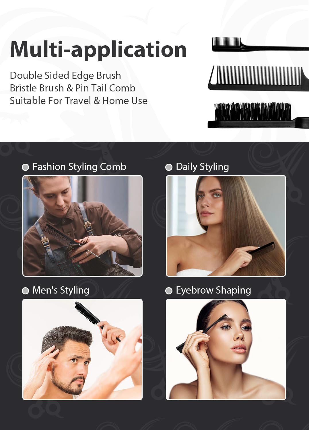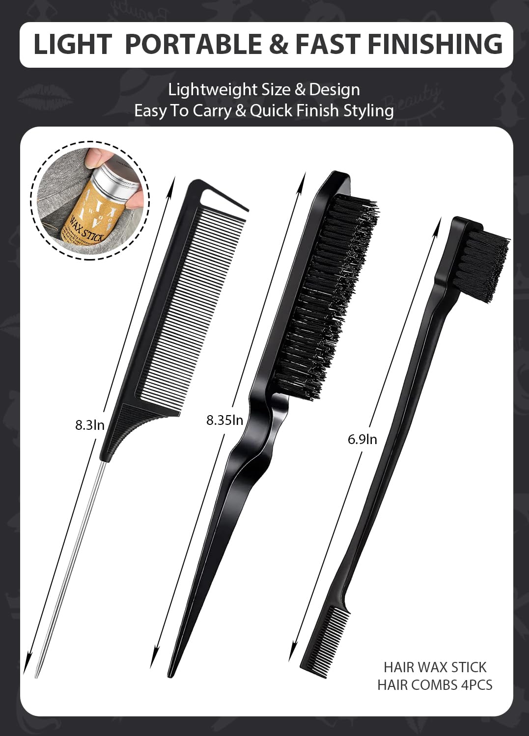 4Pcs Edge Brush Slick Back Hair Stick, Hair Wax Stick for Flyaways, Slick Back Hair Brush for Smoothing Baby Hair, Rat Tail Combs Parting Combs for Braiding Hair, Teasing Brush for Fluffy Hair