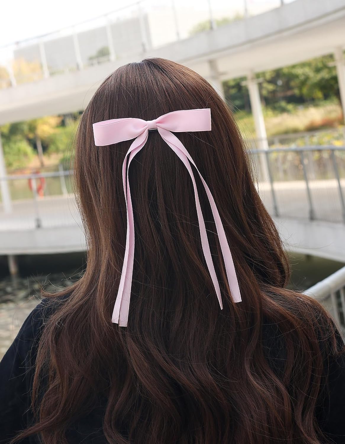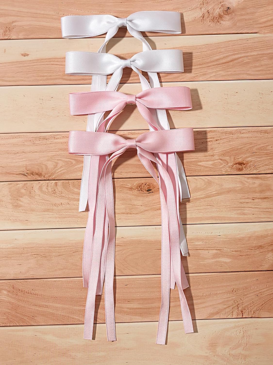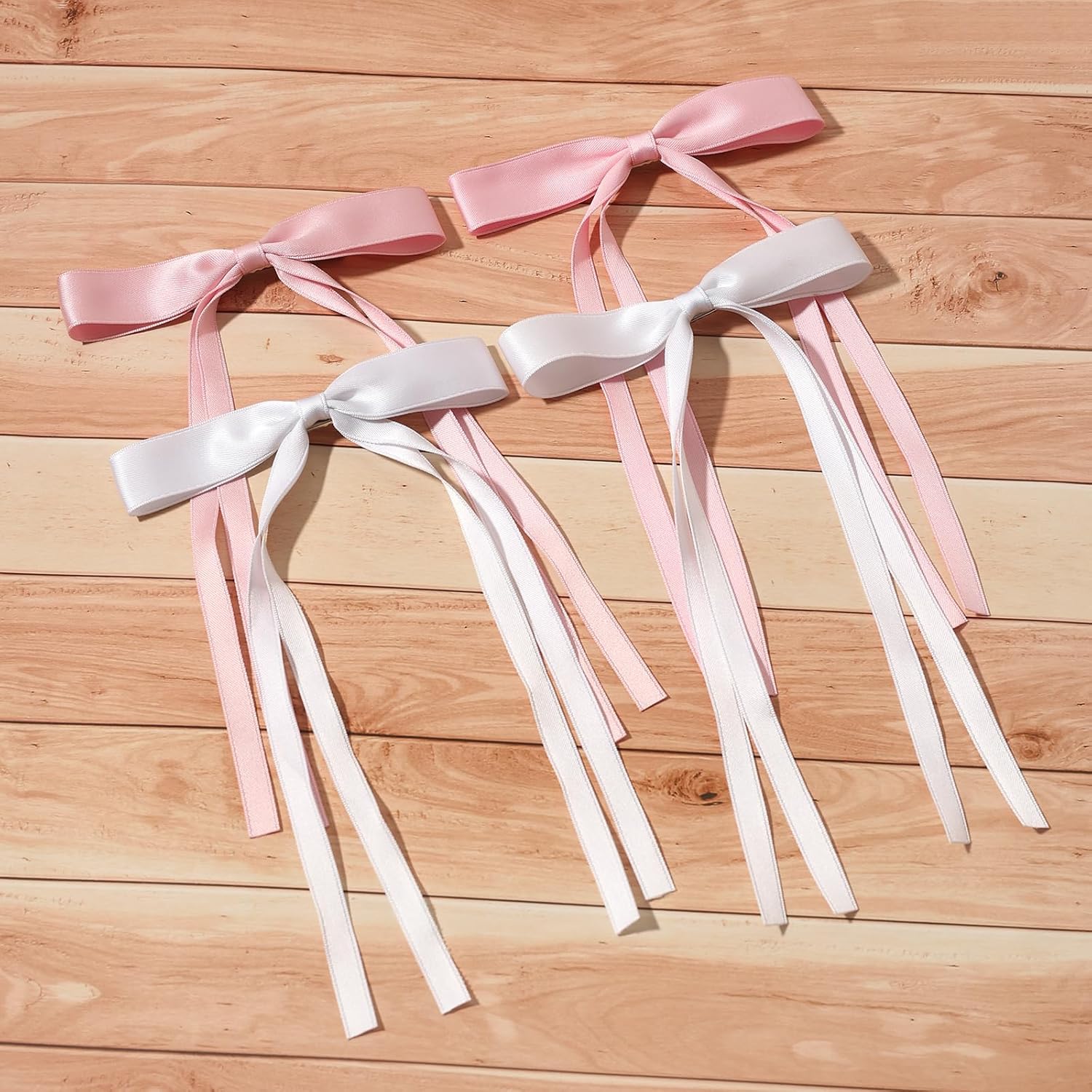 4pcs Hair Clips for Women Tassel Ribbon Bowknot Hair Clips with Long Tail, Women Hair Clip for Girl, Solid Hair Clips Long Hair Accessories Barrettes Claw Hair Clips with Bow (Pink White)