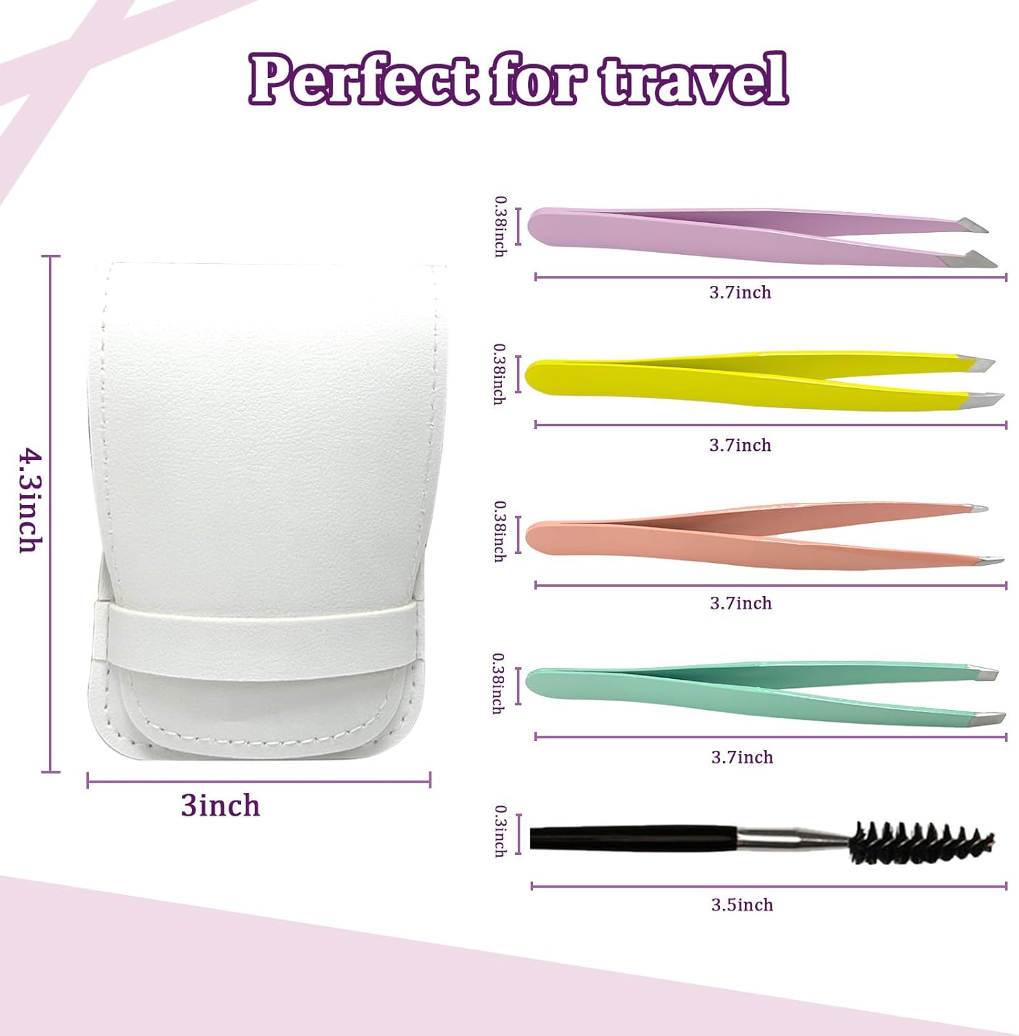5 Pcs Eyebrow Tweezer Set for Women, 4pcs Precision Grooming with Bendable Eyebrow Brush for Facial Ingrown Hair Removal, Mascara Brush for Eyelash, Daily Beauty Tool with Leather Storage Case