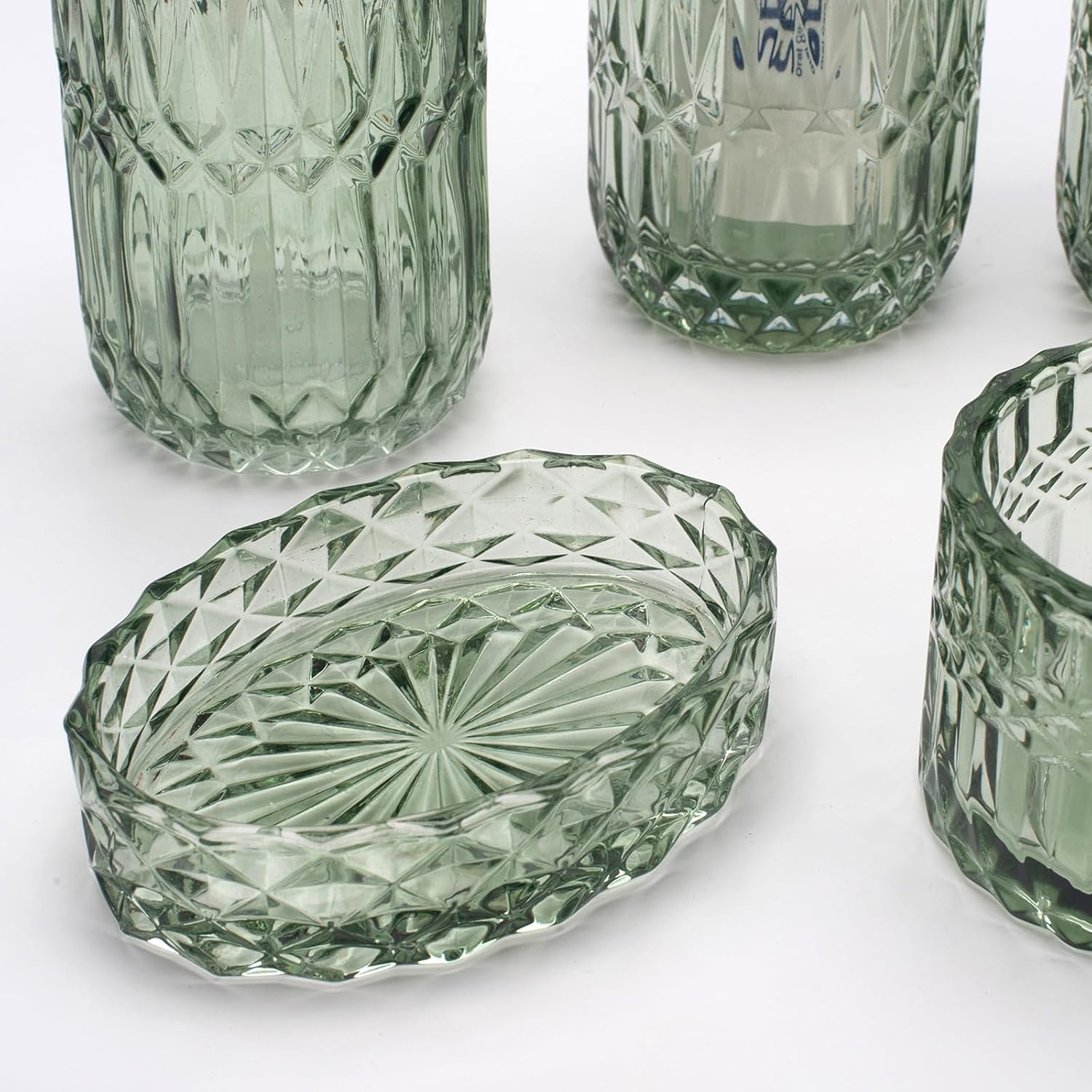 【Elegant and Vintage Design】: A Vintage and elegant glass bathroom accessories with diamond cut surface for a comfortable feel and effective non-slip. Keep your bathroom tidy and organized. Stylish decoration to match with different house styles.