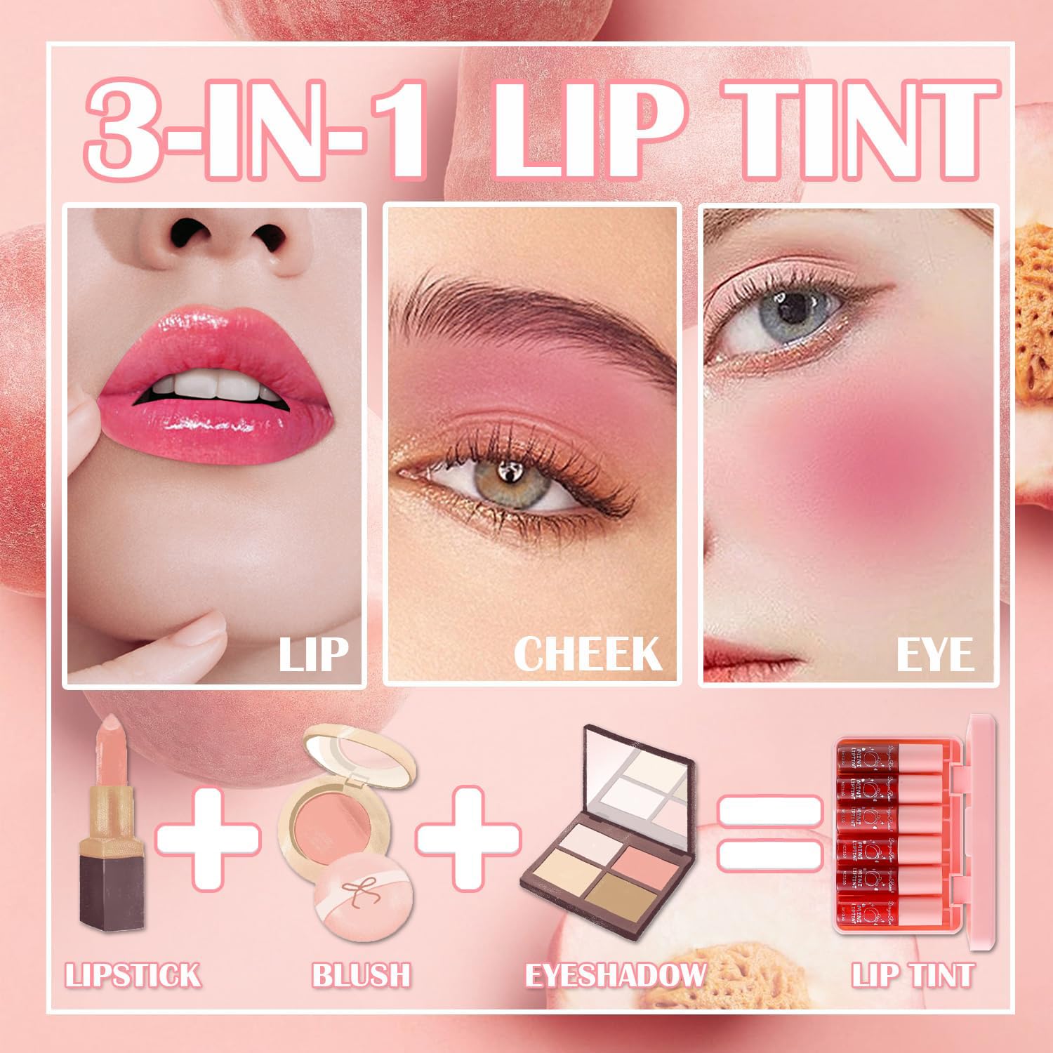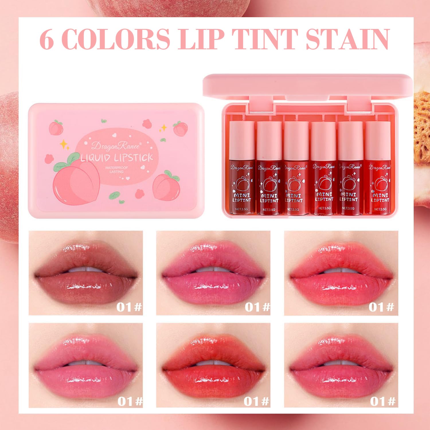 6 Colors Lip Tint Stain Set, Korean Velvet Watery Moisturizing Lip Tint Mini Liquid Lipstick Set, Natural Multi-Use Lip and Cheek Tint, Long-Lasting, High Pigment, Vivid Color, Lip Tint Makeup