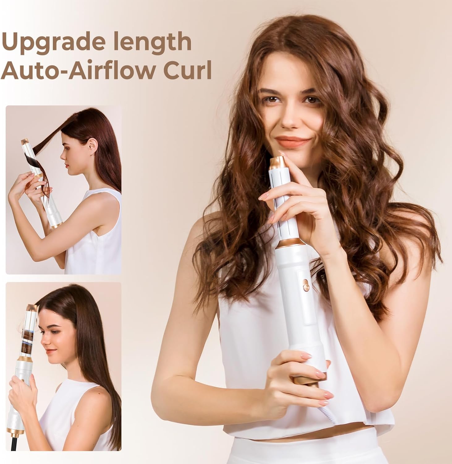 6 in 1 Blow Dryer Brush, Curling Wand Hair Air Styling Tools Set, Ionic Hot Air Brush Hair Dryer with Massage, Round Hair Dryer Brush, Thermal Brush, Hair Straightener,Left&Right Rotating Curling Wand