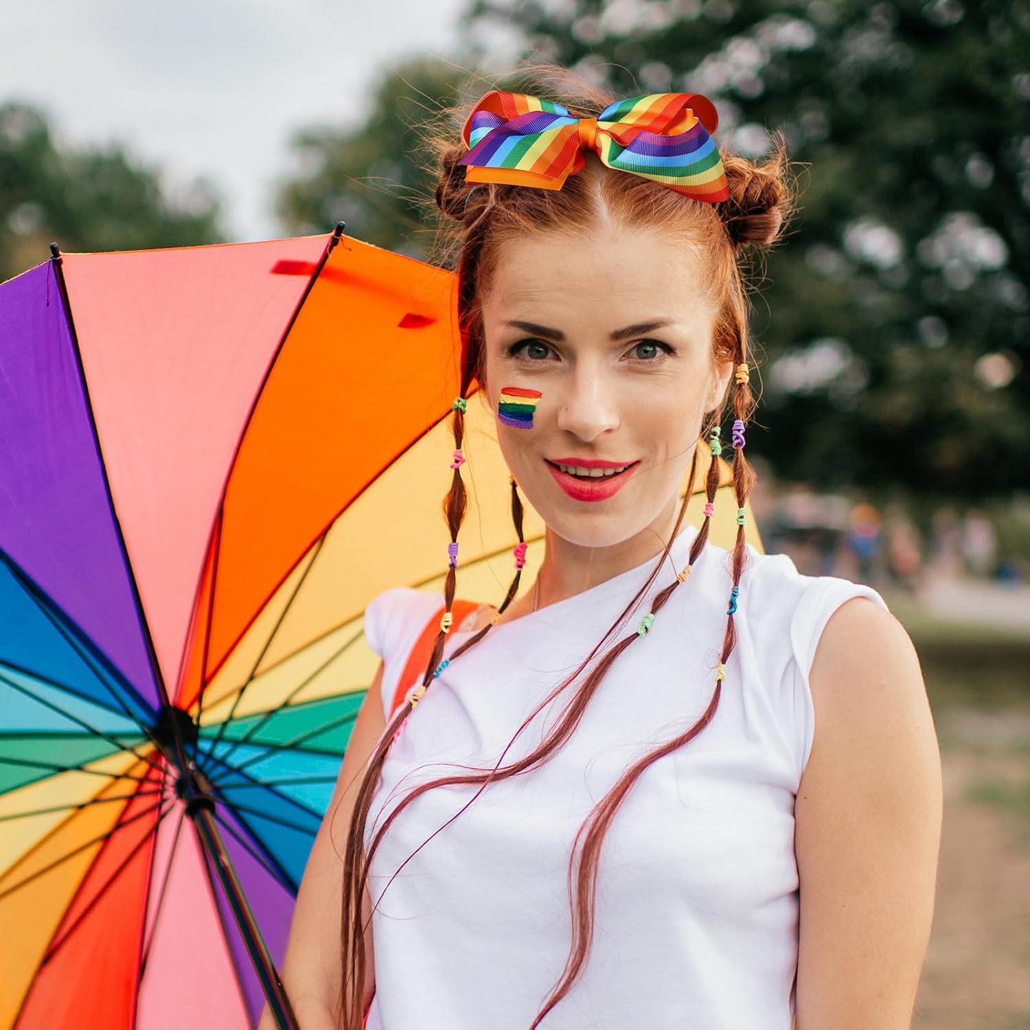 Pride Month Decor Accessories- Perfect big rainbow hair bow clips for gay pride, rainbow pride day dress up,pride month parade outfits,rainbow pride party favors, costume show, cosplay, drama,LGBT pride events, transgender pride day, rainbow themed parties, music festivals, carnivals, themed parties, festival celebrations,back school, wedding, christmas, daily wear and more.