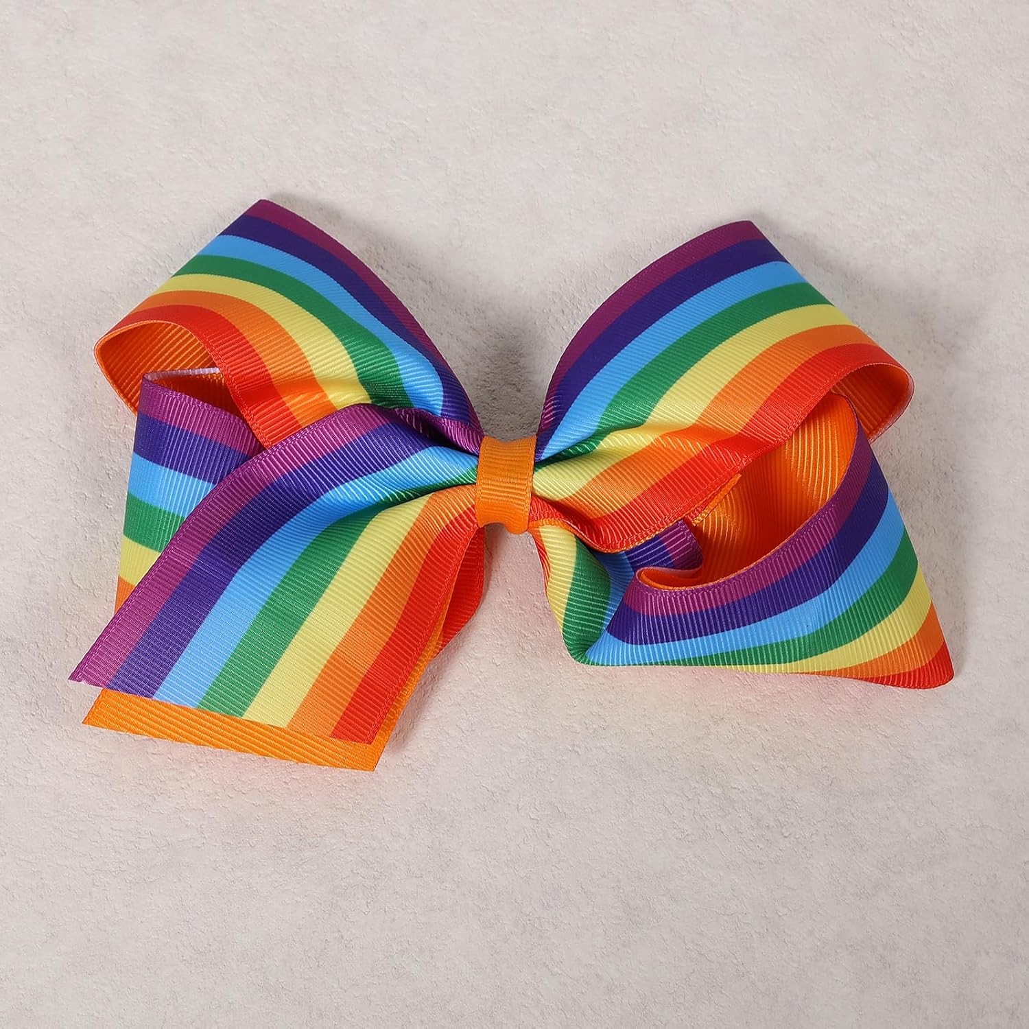 6 inch Big Rainbow Hair Bow Clips Hair Barrettes Alligator Hairpins for Girls Women Rainbow Pride Month Parade Outfit Decor Accessories Wedding Summer Holiday Gift