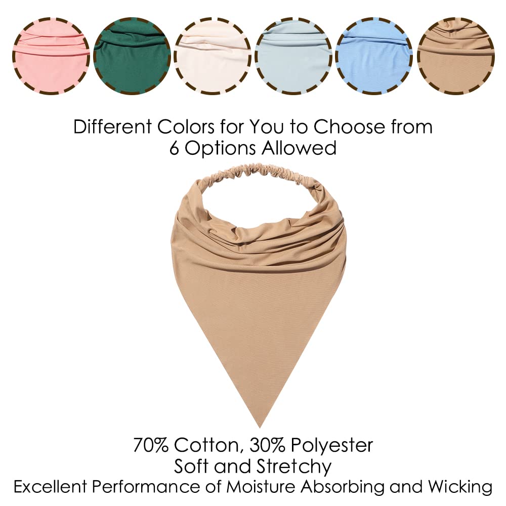 6 Pack Hair Scarf Headband for Women – Elastic Hair Kerchief Large Boho Triangle Bandana Head Scarf with Clips Non Slip Solid Color Headbands Hair Scarves Hair Accessories for Teen Girls