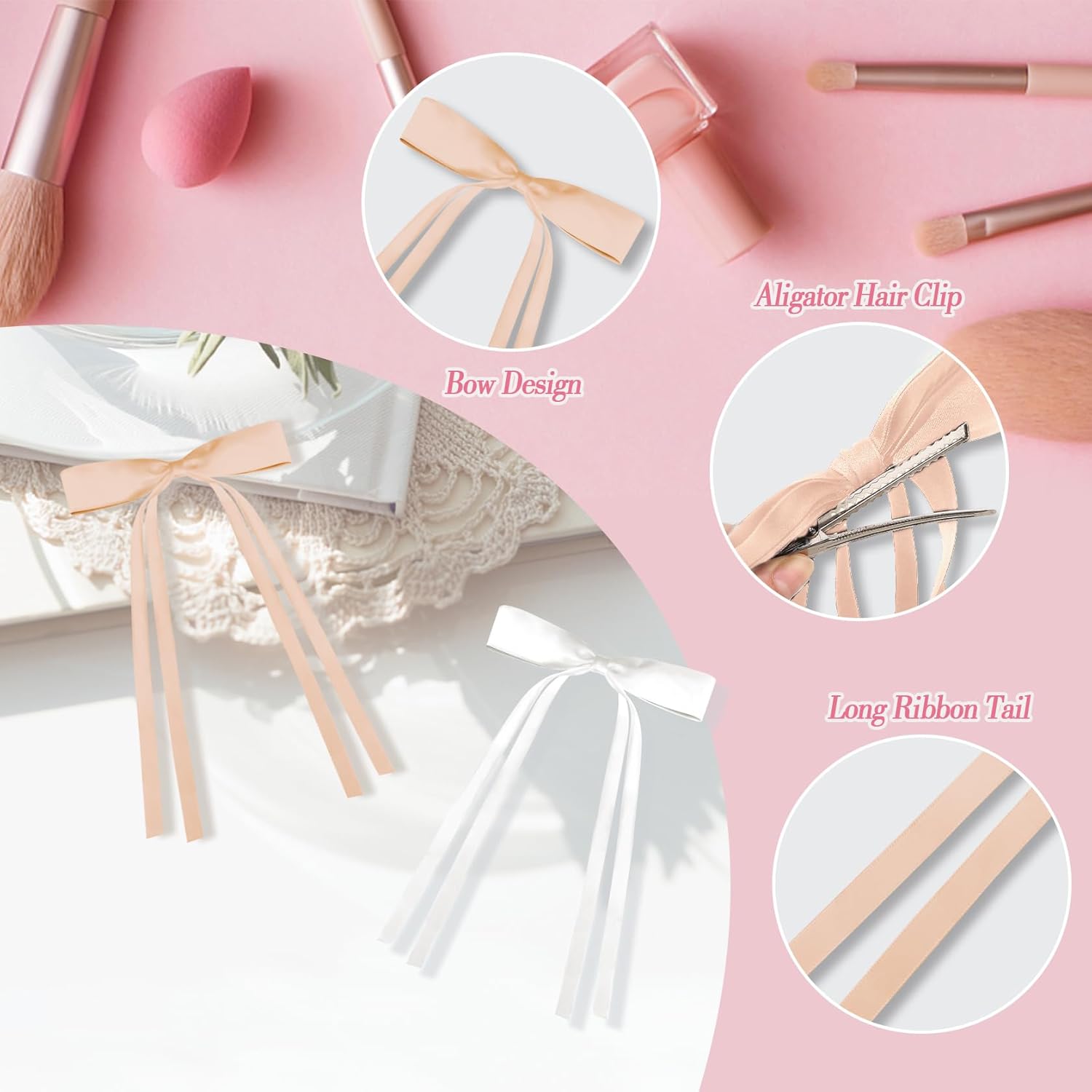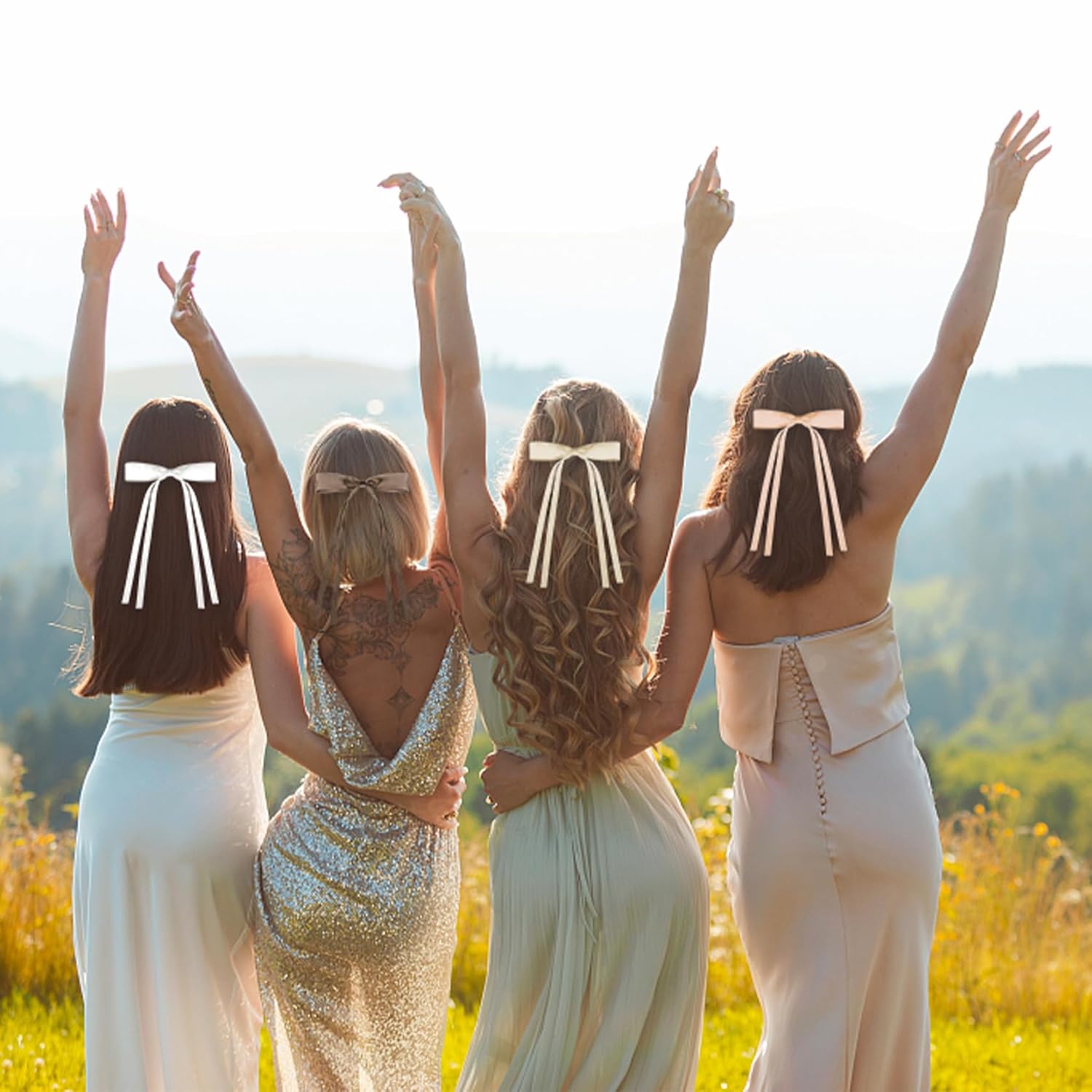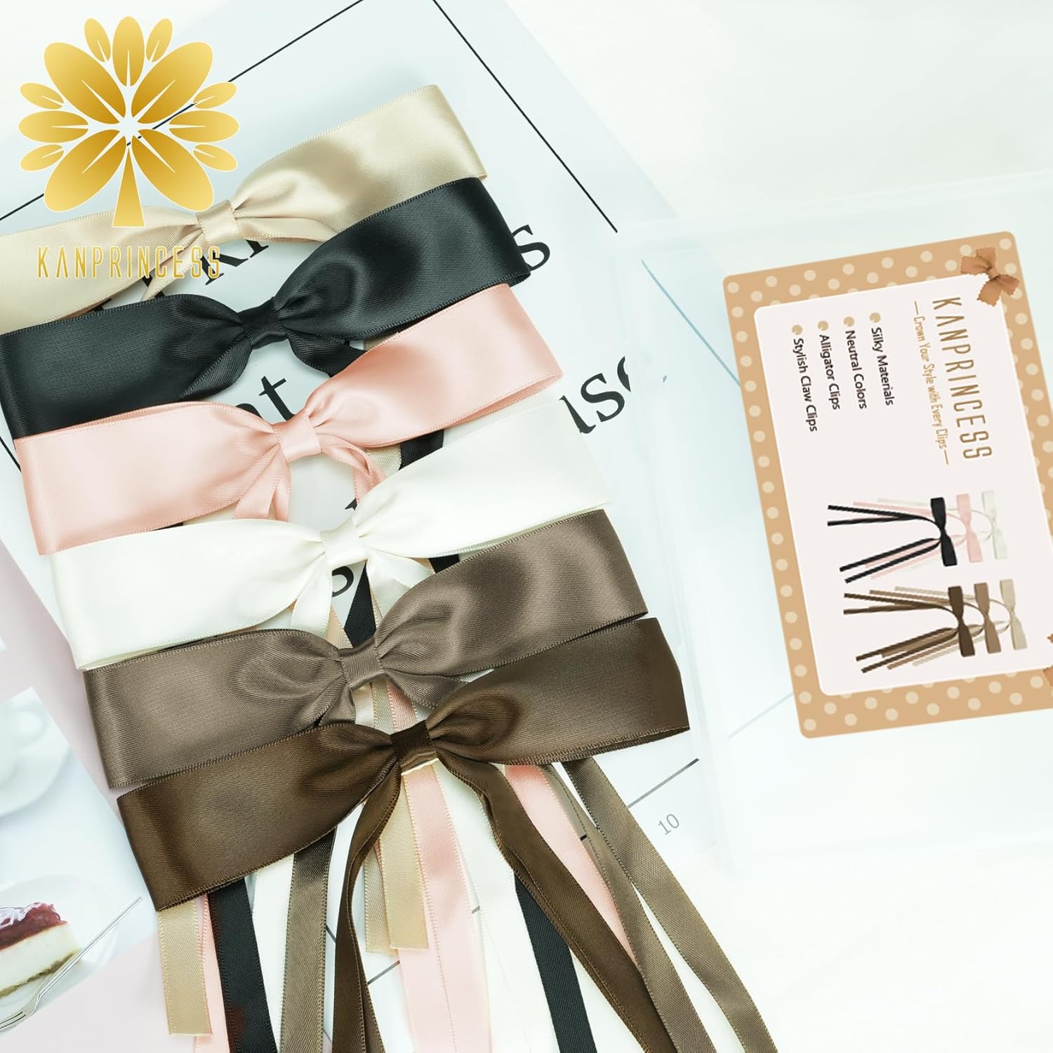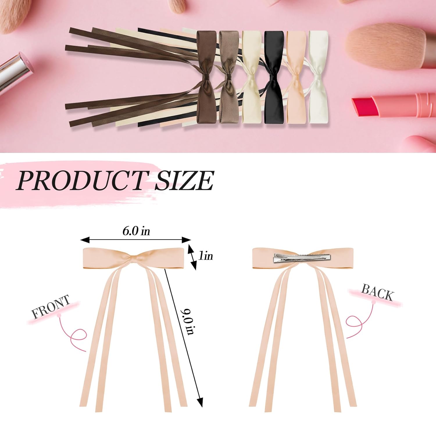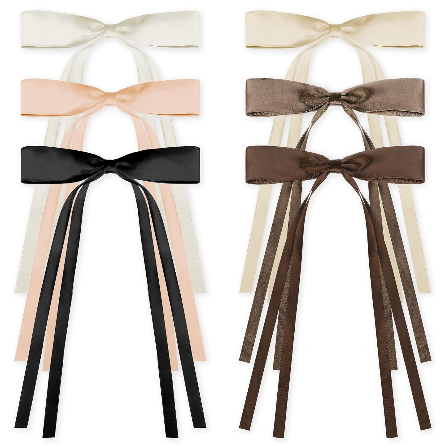 6Pcs Hair Bows For Women, Ribbon Bow Hair Clips For Girls, Tassel Ribbon bows For Hair, Satin Hair Bow Clips With Long Tail, BowKnot Barrettes Hair Accessories For Girls Teens(Set1)