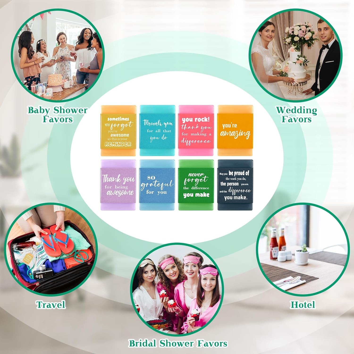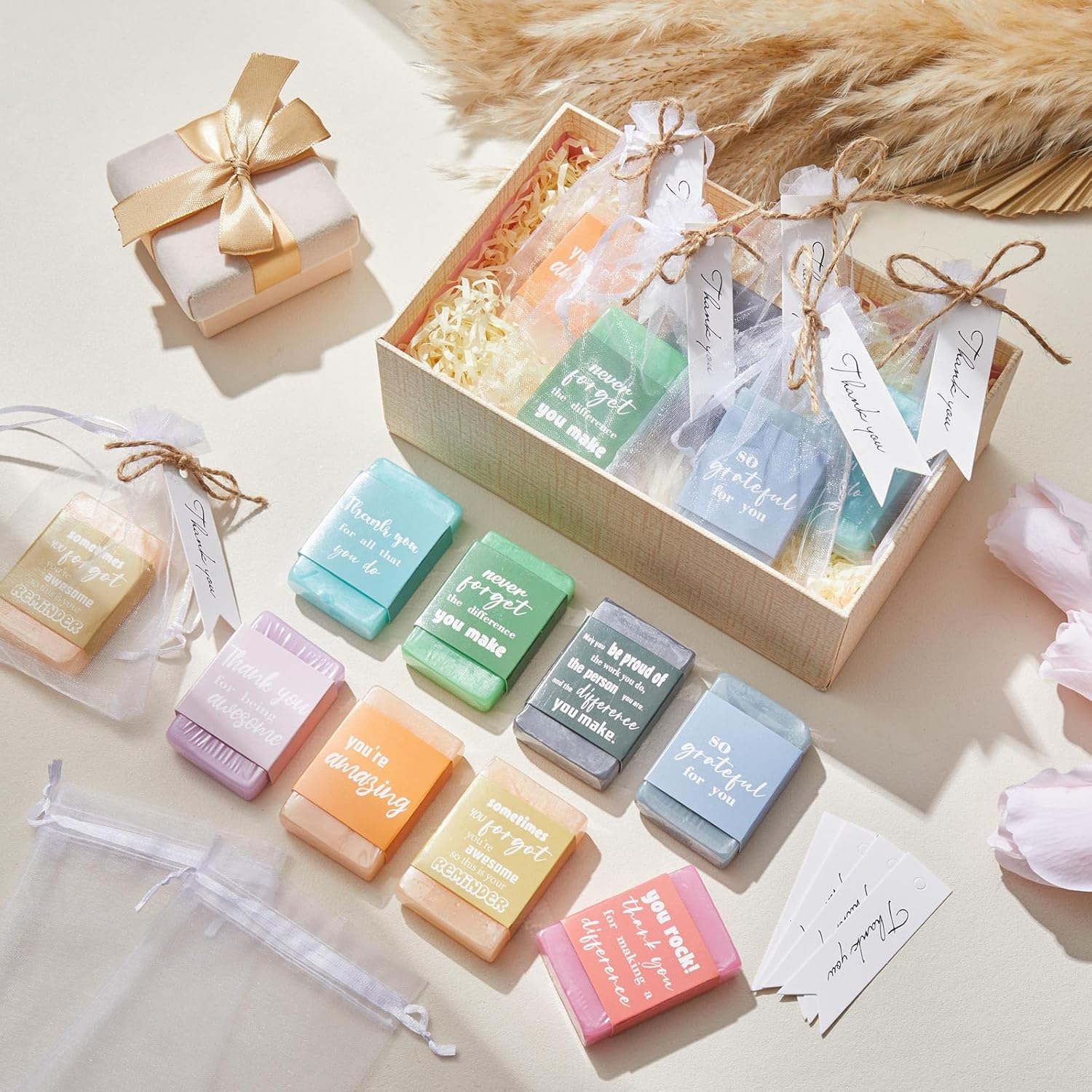 Thank You Theme Design: the bath soaps are designed with 8 styles of thankful and inspirational words, such as [so grateful for you], [you’re amazing] and more, which are suitable as gifts for family, friends, staff, teachers, nurses, etc., to express your gratitude and appreciation, and they will be very happy and surprised