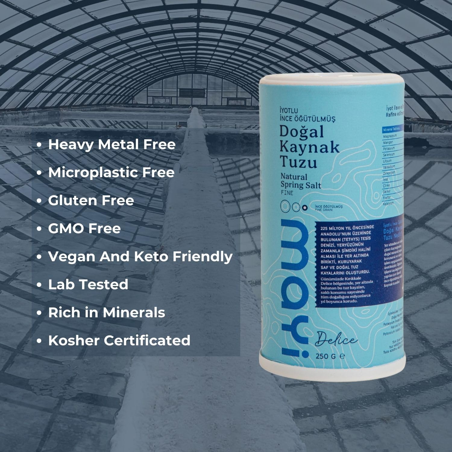 8.8oz Mayi Natural Spring Salt Shaker – Rare Unrefined Mineral, Microplastic-Free, 84 Essential Minerals, Low Sodium, Kosher Certified, Pure and Clean for Cooking & Table Use