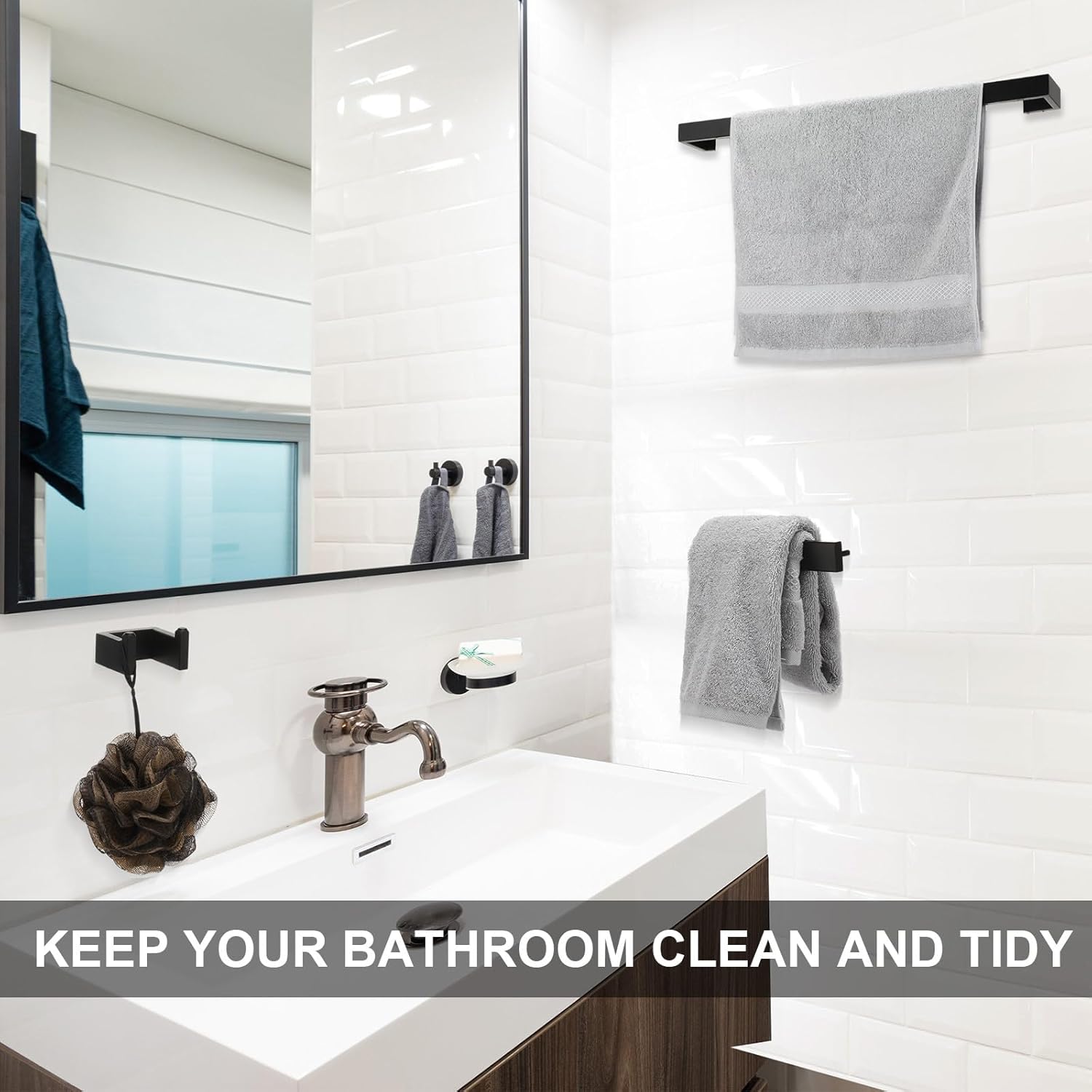 The bathroom accessory set is designed with clean lines and sturdy construction. Special square shape and concealed mounting hole make it more beautiful and sturdy. We polished every square corner of the product into an arc shape to make sure the holder won’t scratch your body in daily use.