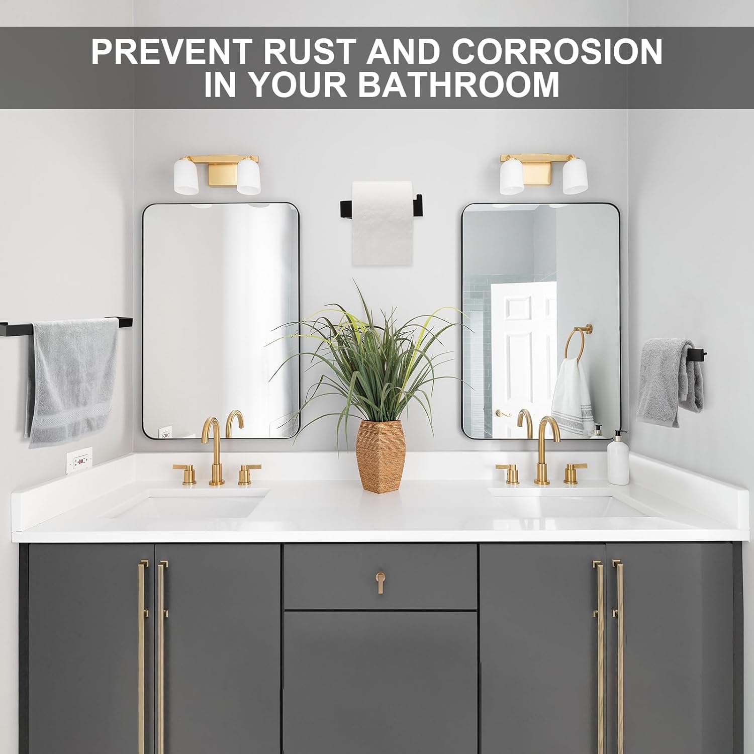 Brushed Stainless Steel Surface: this bathroom hardware set is treated with brushed stainless steel, resists spots and scratches; A fine finish protects our brushed stainless steel towel bar set from corrosion and rust in wet environments and enhances durability