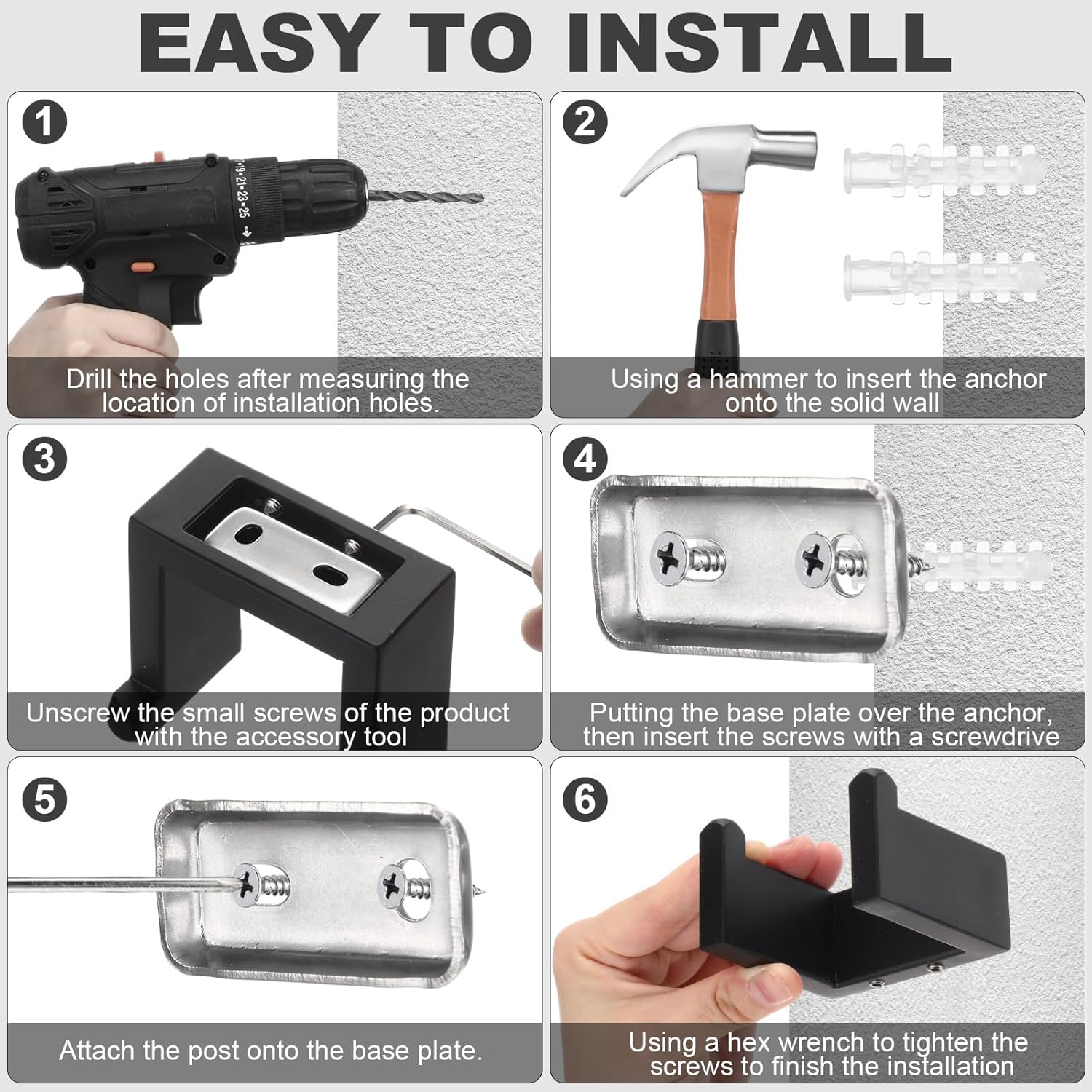 Easy to Install: the bathroom hardware set brushed stainless steel come with the mounting accessories needed, stainless steel screws and anchors which are of quality and the screws are concealed that gives it a more clean and attractive look; Available in various finishes, you can mount it to most flat surface, bathroom wall, or wood door