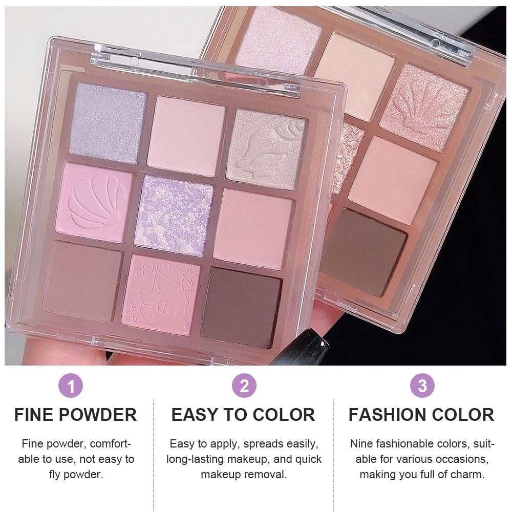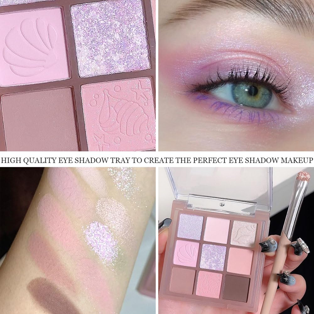 9Colors Nude Pink Purple Warm Colorful Eyeshadow Palette Makeup,Matte Shimmer Neutral Bright Eye Shadow Naturing-Looking Long Lasting Waterproof Blendable Hypoallergenic Travel Size Eye Makeup