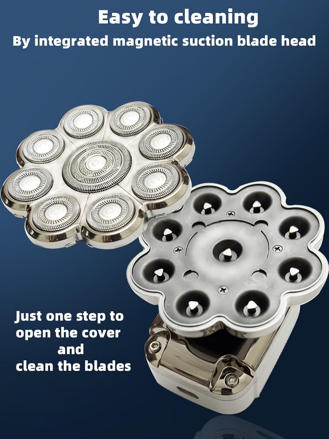 【Easy Cleaning】:The integrated magnetic blade head can be disassembled in just one step and cleaning,This shaver is 100% waterproof for a smooth shave, dry or wet, with or without shaving cream, and can be used in the shower or as a travel essential in your daily grooming kit for bald men