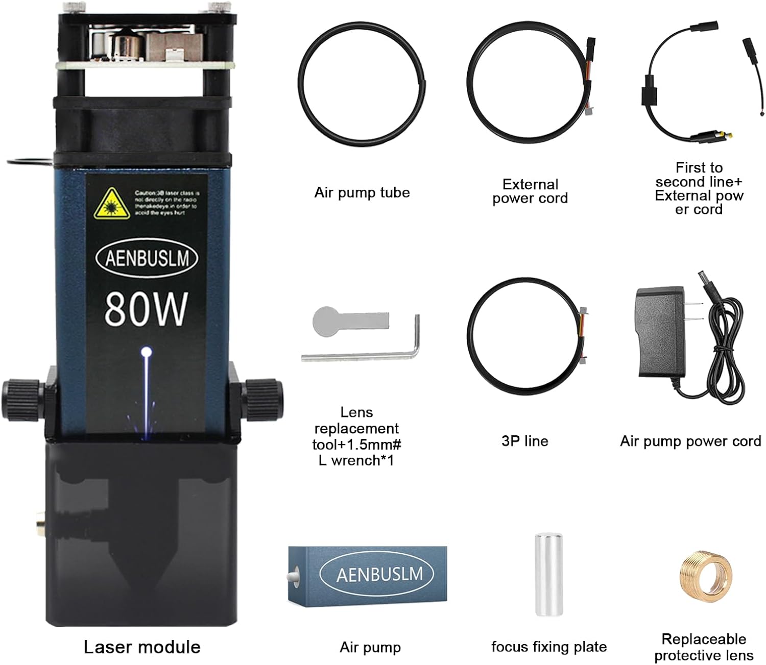 AENBUSLM 80W Laser Module with Air Assist, 10W Output Power, Fixed-Focus, Built in FAC,Double Ultra-Fine Compressed Spot CNC Carving DIY Laser Masterfor Laser Cutter & Laser Engraver Machine 12V