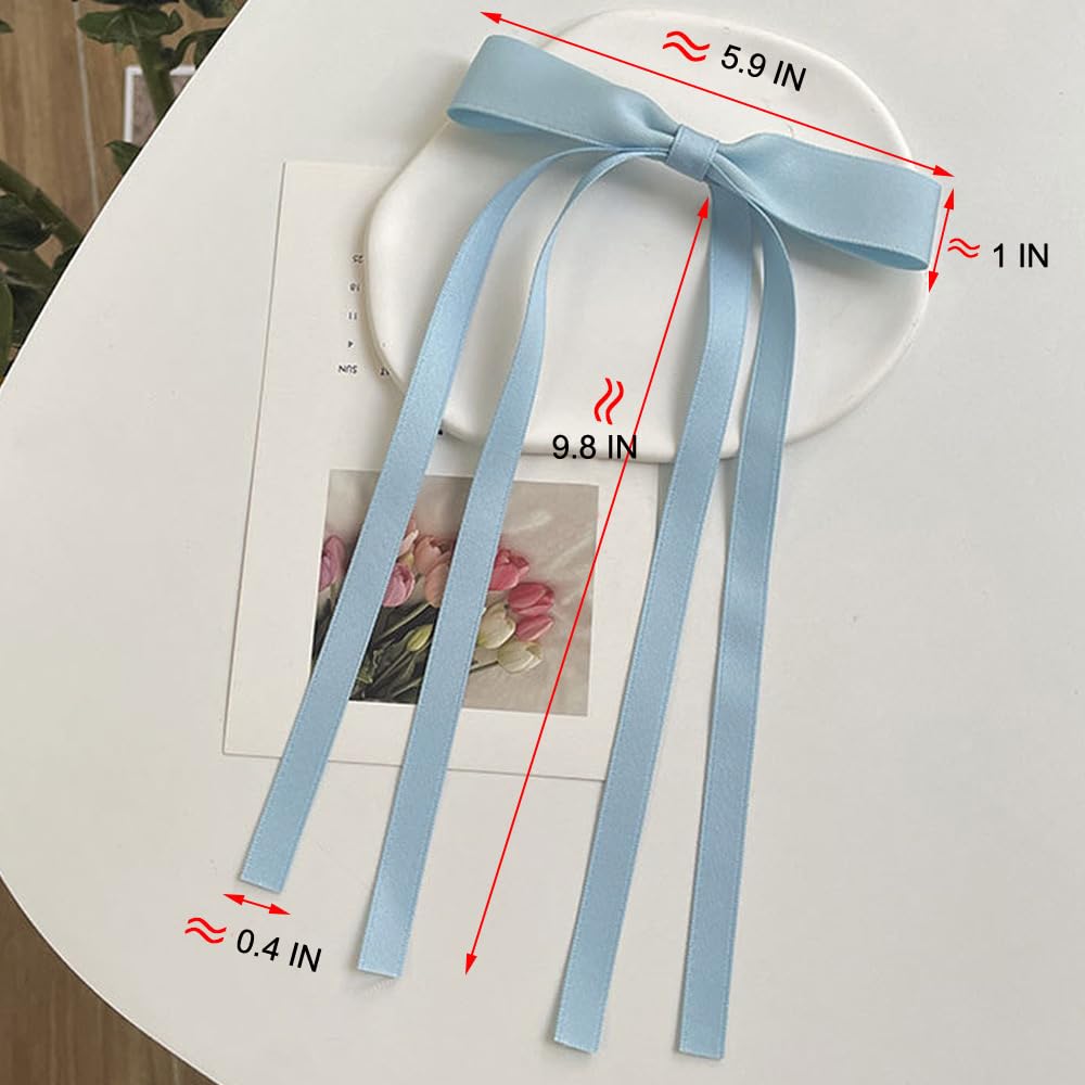 Agirlvct Hair Bow for Women,9 pcs 2 Size Long Tail Bow Hair Clips,Ribbon Barrettes with Metal Claw Clips and Bow-knots, Cute Hair Clips with Tassel Hair Accessories Gift for Girls Teens Student