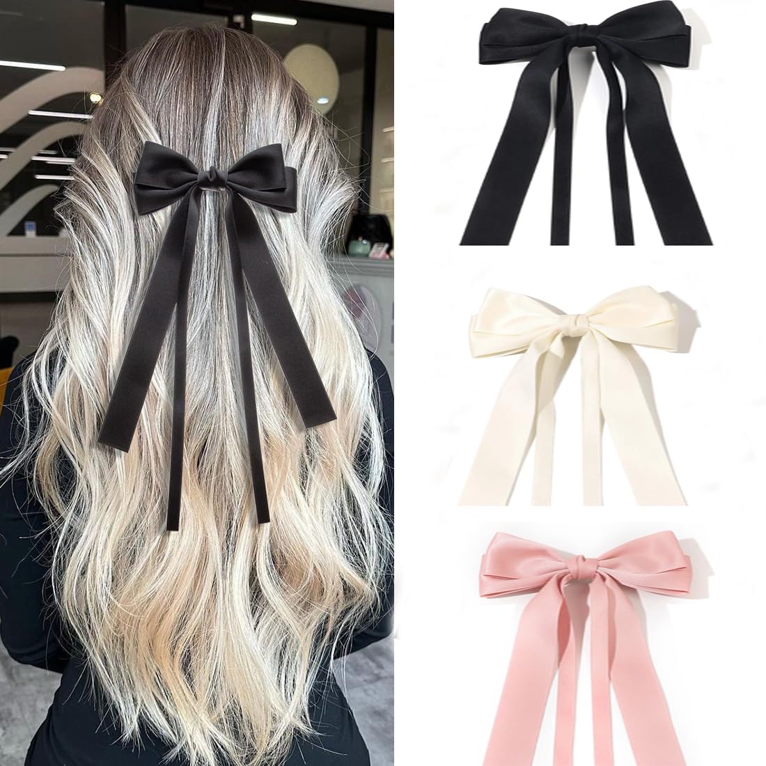 【Hair Clips with Long Tail】 Satin big hair bow with long tail and comfortable hair clasp will create your best stylish and romantic look! They’re super silky and the clip is big enough to use on adult hair/hairstyles. It will flutter in the wind, which makes the your hair look more gentle and elegant.