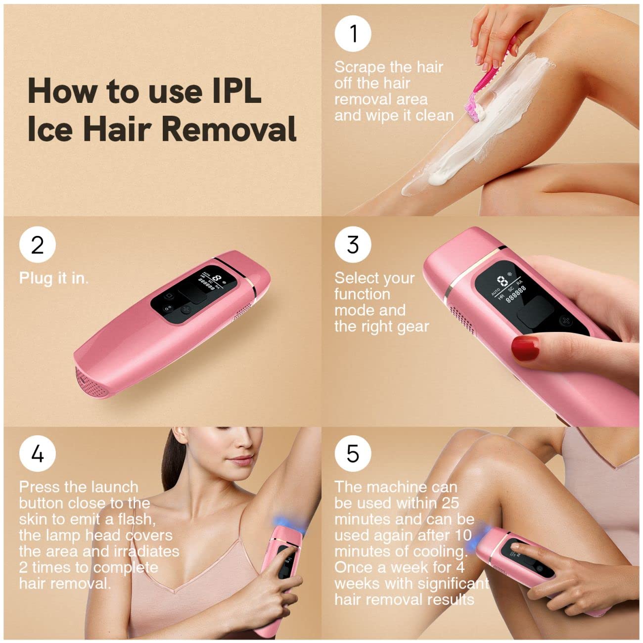 AJJ Ipl Hair Removal Device with Ice Cooling Function Light Hair Removal Devices Apply to Body Face Hair Removal For Women Men, Easy To Carry On In Travel (Pink)