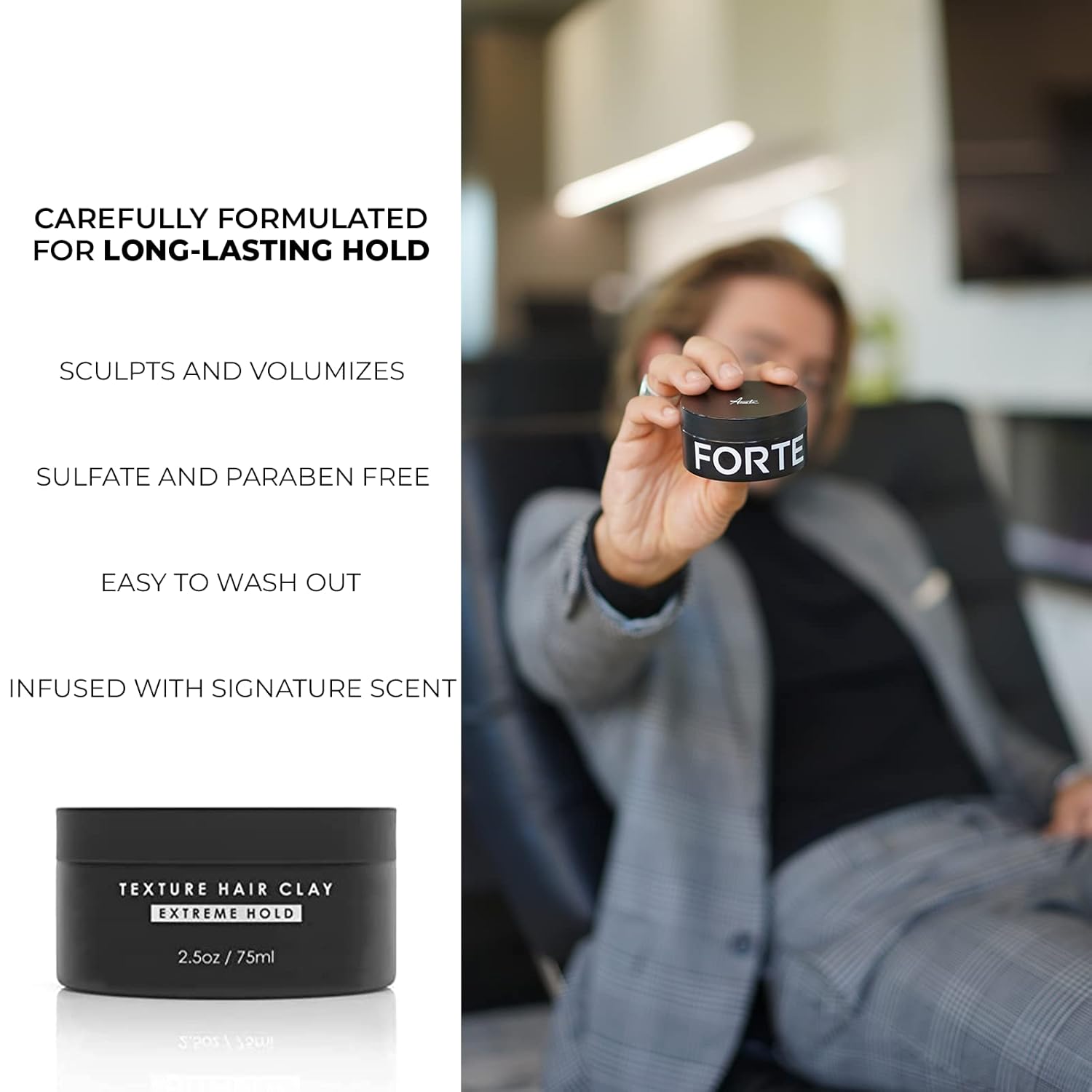 Alex Costa Hair Clay for Men by Forte Series Extreme Hold Men’s with Natural Ingredients to Add Texture, Volume and Definition to Thick/Coarse Hair Premium Men’s Hair Styling Products