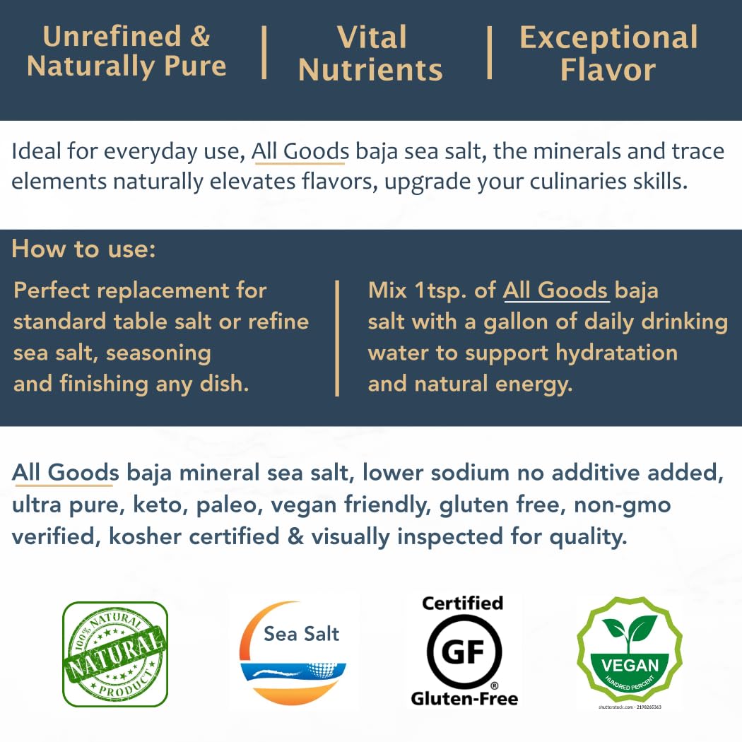 ✔️ VITAL MINERALS: All Goods baja mineral sea salt, sourced from fresh seawater, hand harvested, makes every meal a special occasion, features a comprehensive mineral & trace element profile for enhanced taste & improved vitality.
