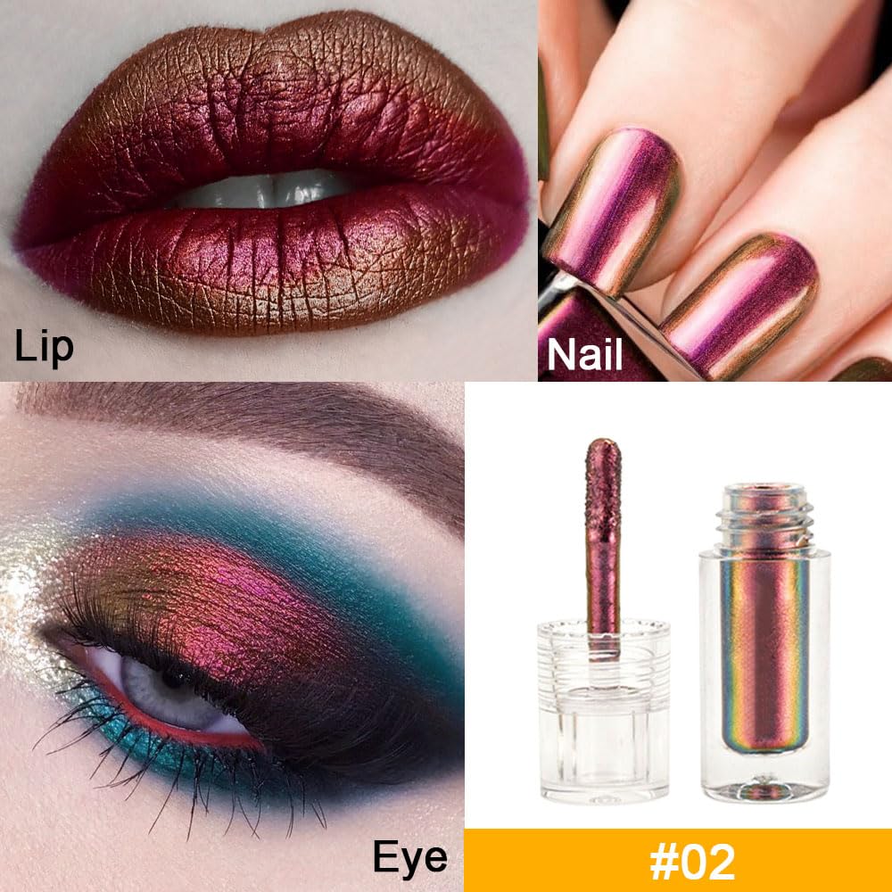 AMY’S DIARY Duochrome MultiChrome Chameleon Liquid Metallic Eyeshadow, High-Impact Multi-Dimensional Finish,Pink GOLD Silky Smooth and High Pigment Holographic Glitter Eyeshadow Makeup (#02)