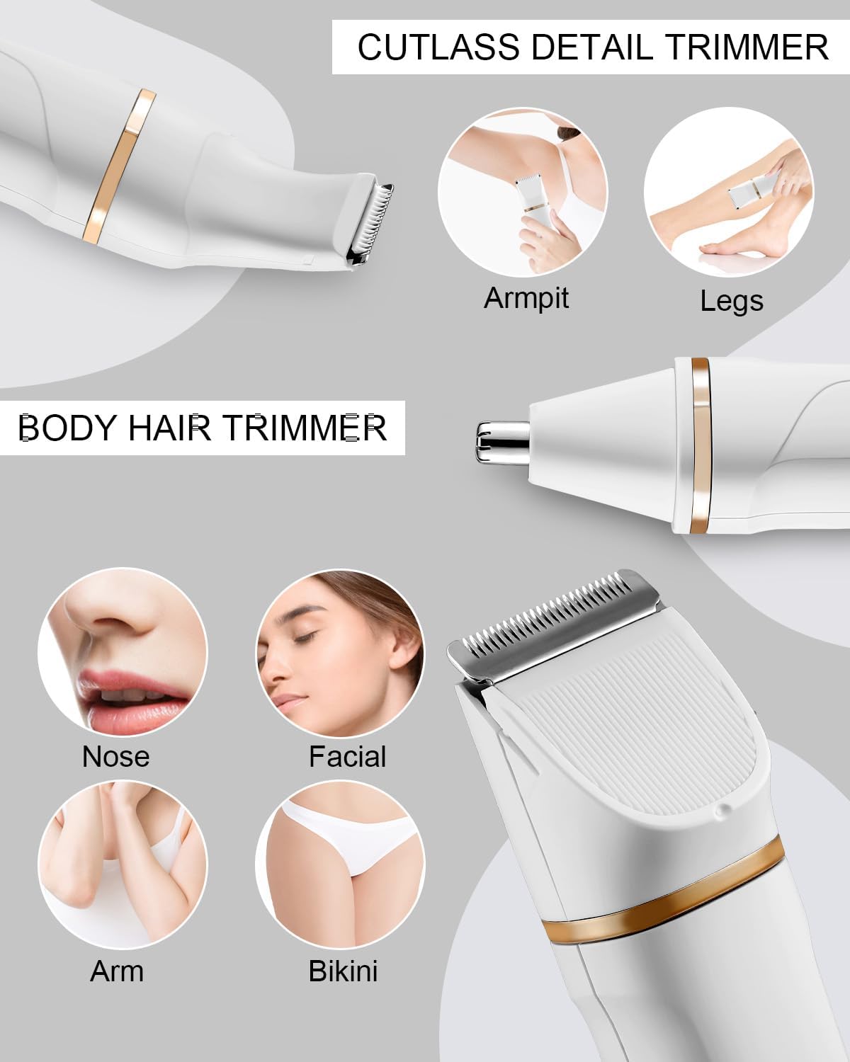 AREYZIN Bikini Trimmer for Women Painless Electric Razor for Women,3 in 1 Pubic Hair Trimmer for Women,USB Recharge Dock,Replaceable Ceramic Blade Heads,IPX7,Body Hair Trimmer,White