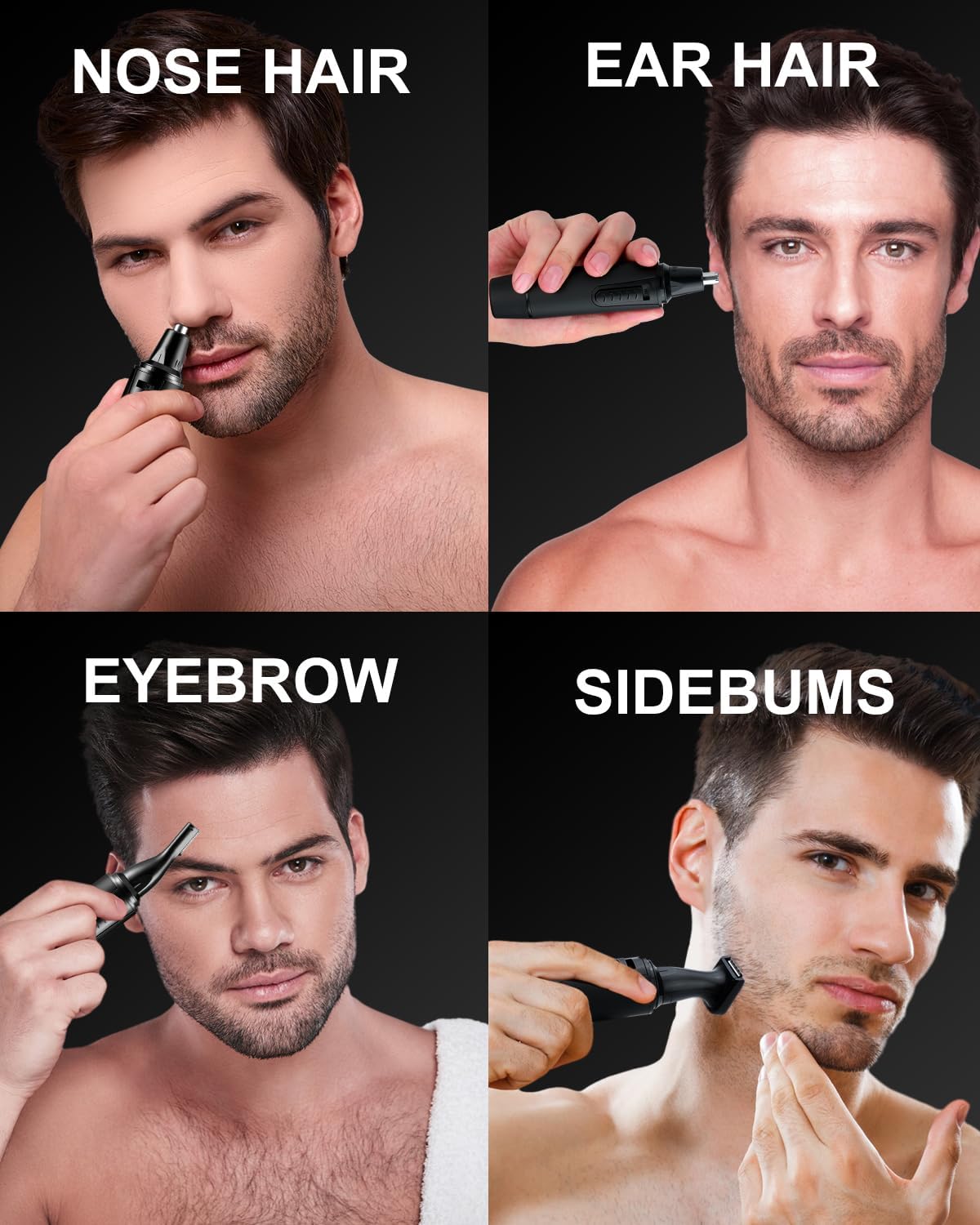 AREYZIN Nose Hair Trimmer for Men and Women Professional USB Rechargeable Nose Trimmer Nose Hair Clippers Eyebrow Facial Hair Trimmer Body Grooming Kit IPX7 Waterproof Dual Edge Blades, Black