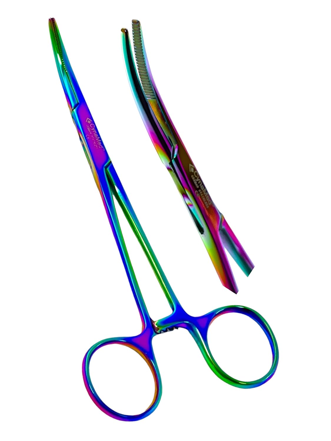 ArTLaB-Dog Pet Ear/Nose Hair Puller Grooming and Tick Removing Hemostat Locking Forceps Pliers, 5.5″ (14cm), Straight Curved Forceps (Curved Rainbow 5.5″)