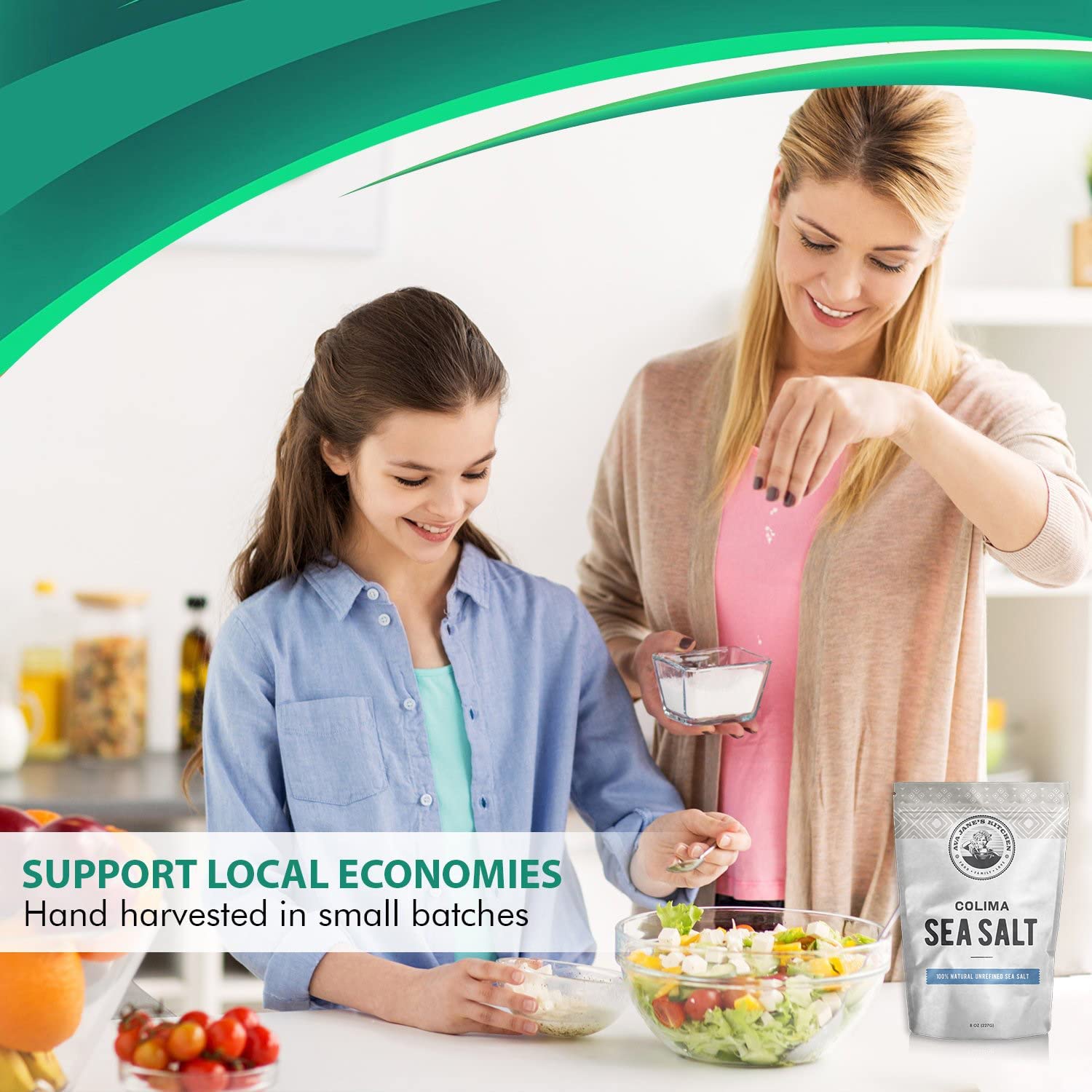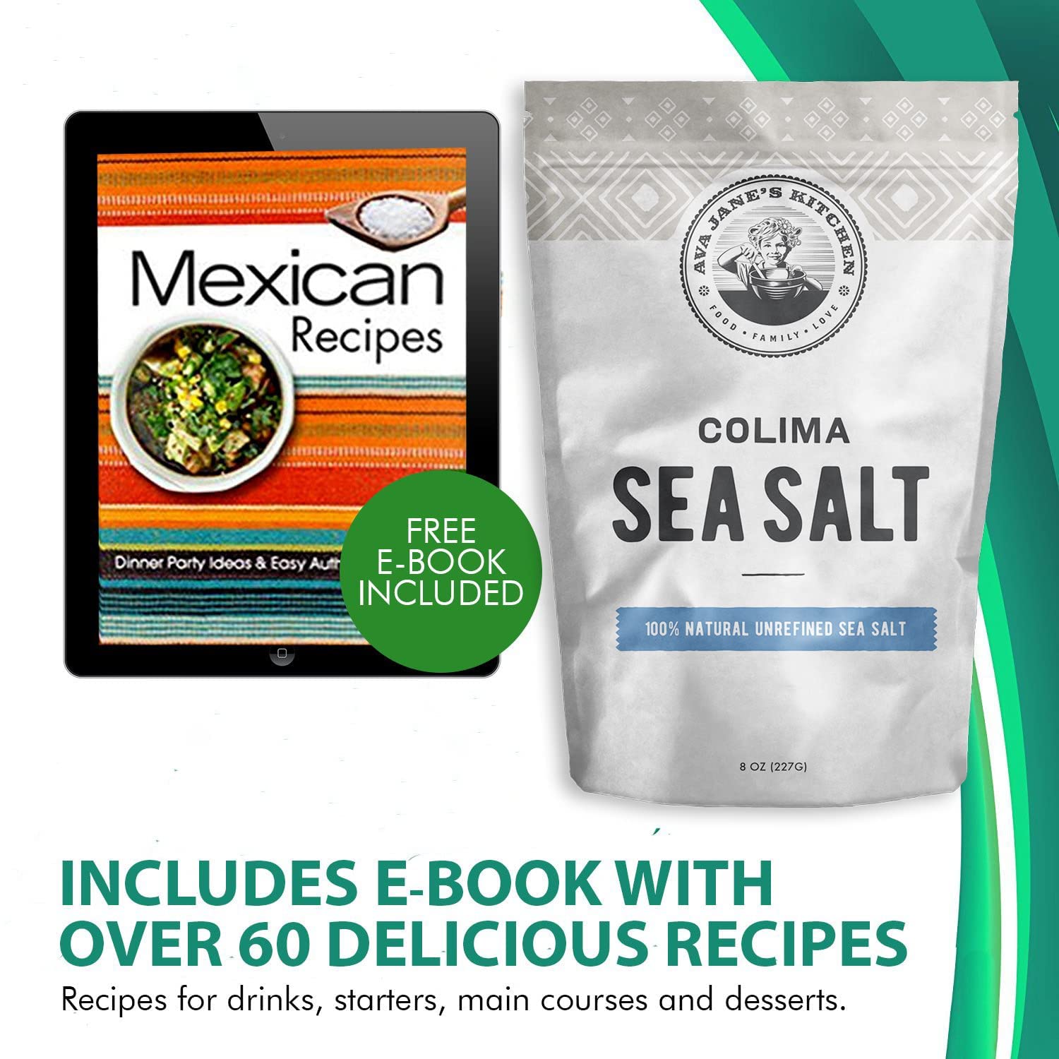 AVA JANE’S KITCHEN – Colima Sea Salt Unrefined Hand Harvested – 100% all Natural Organic Sea Salt, Non GMO Fine Grain With Resealable Ziplock, Salt Gourmet Grade, 8oz