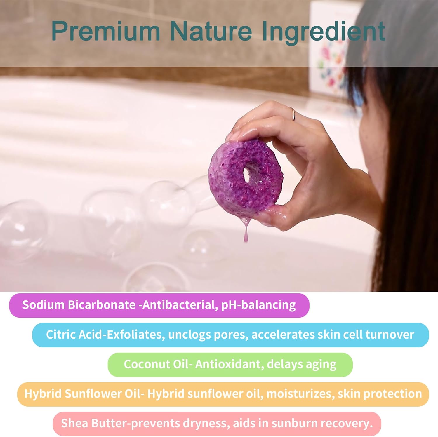 🛀Pure indulgence, no toxins: Non-toxic, organic,plant-based bath bombs for a gentle bathing ritual.