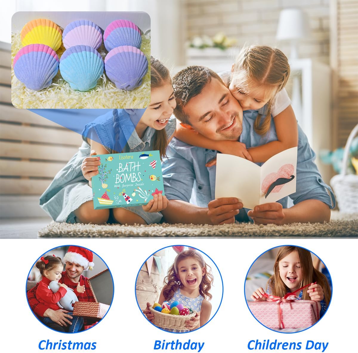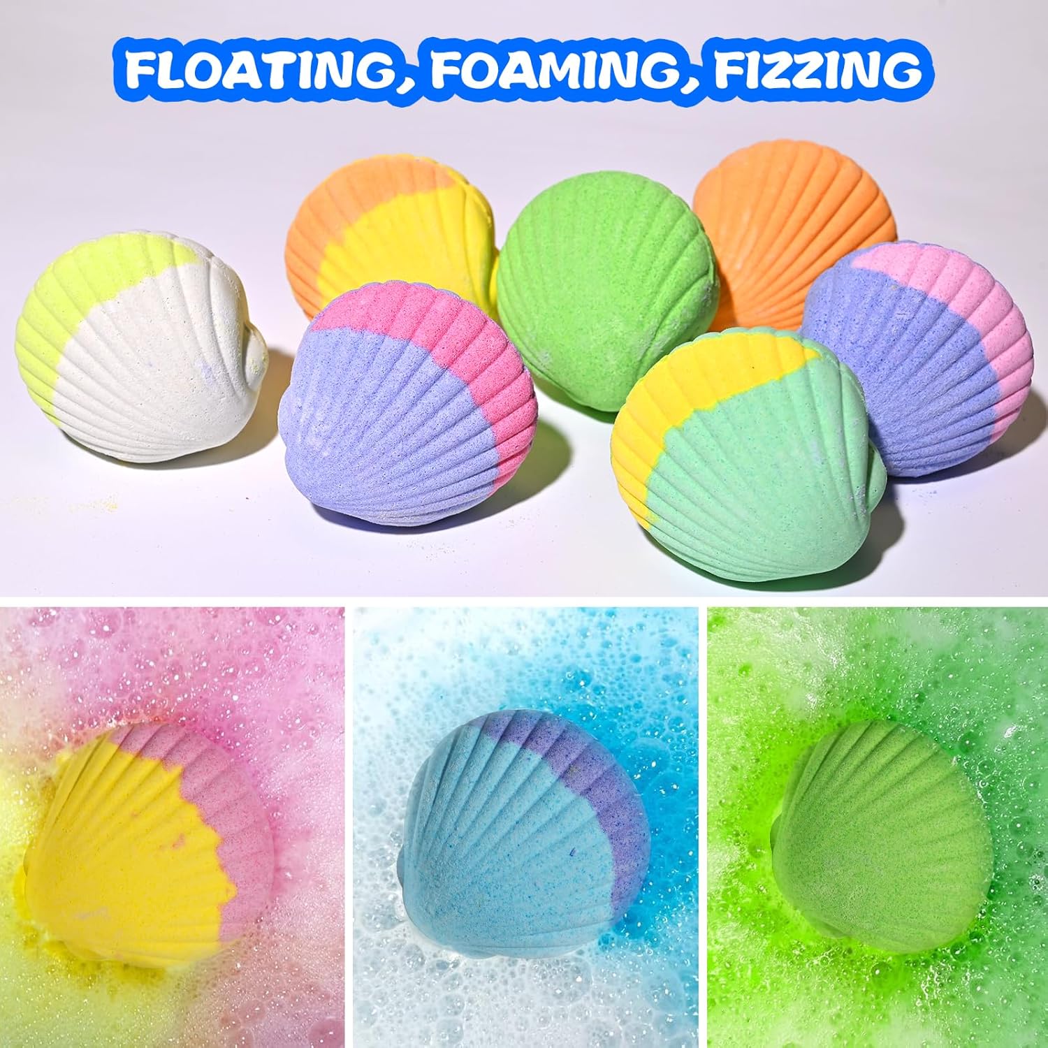 PERFECT GIFT – Our bath bombs is cute shell shape. The gift sets come individually wrapped in a beautiful, vibrant box, it will be unique gift for kids. Perfect for Christmas, the stocking stuffers for kids, Halleween party favors, birthdays and Easter eggs. Suitable for boys and girls.