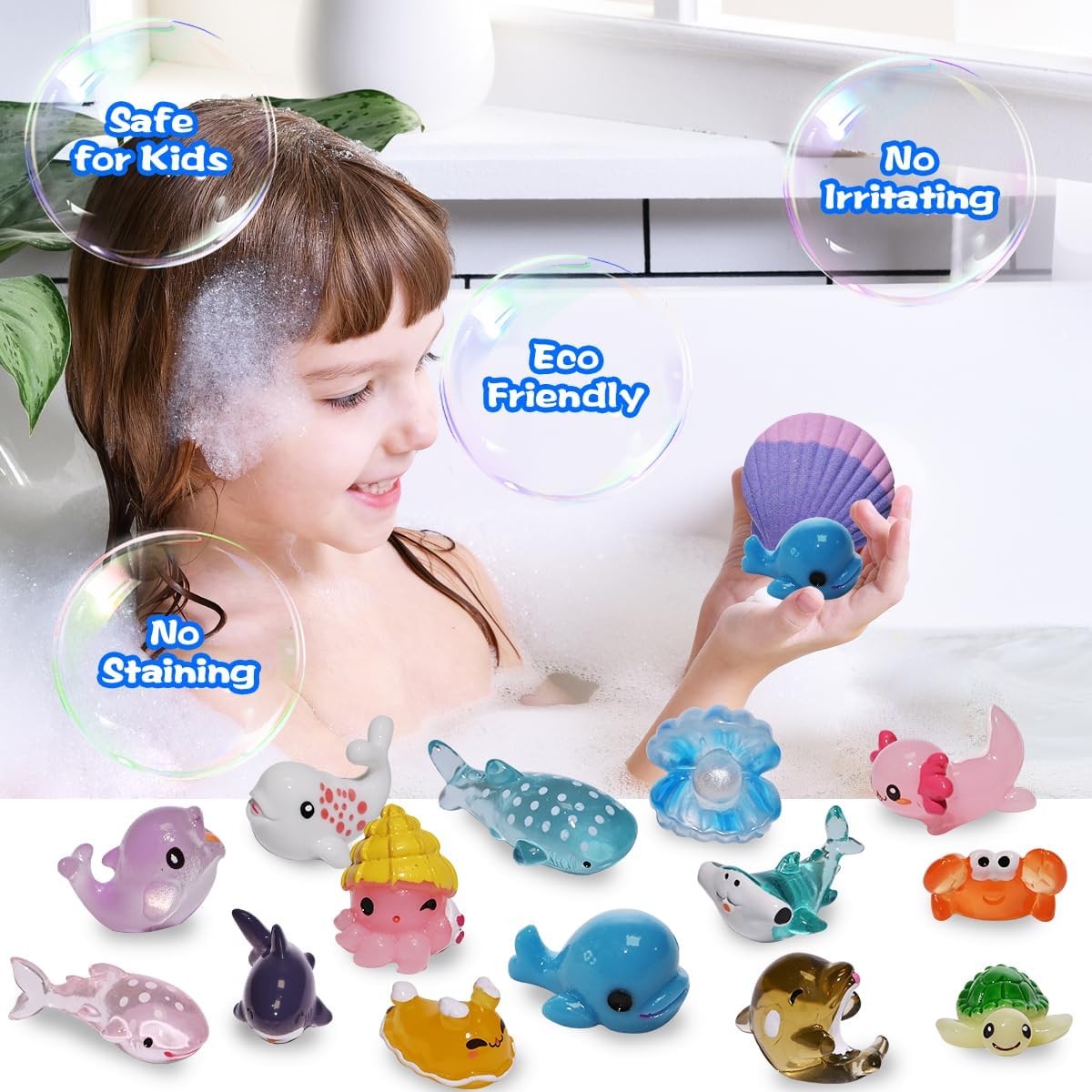 20 PACK KIDS BATH BOMBS WITH SEA ANIMALS -Each kids bath bombs has different animal inside. Including 20 different sea animals. It will make bath time mysterious and exciting, your child will fall in love with it.